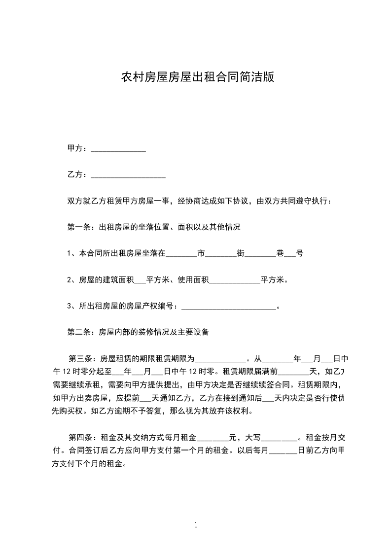 二、该房出租的使用性质为_________用房,月租金为_________元,缴租方式为_________支付一次,计人民币(大写)_________元(¥_________元),以后就在付款期末前_________天支付。