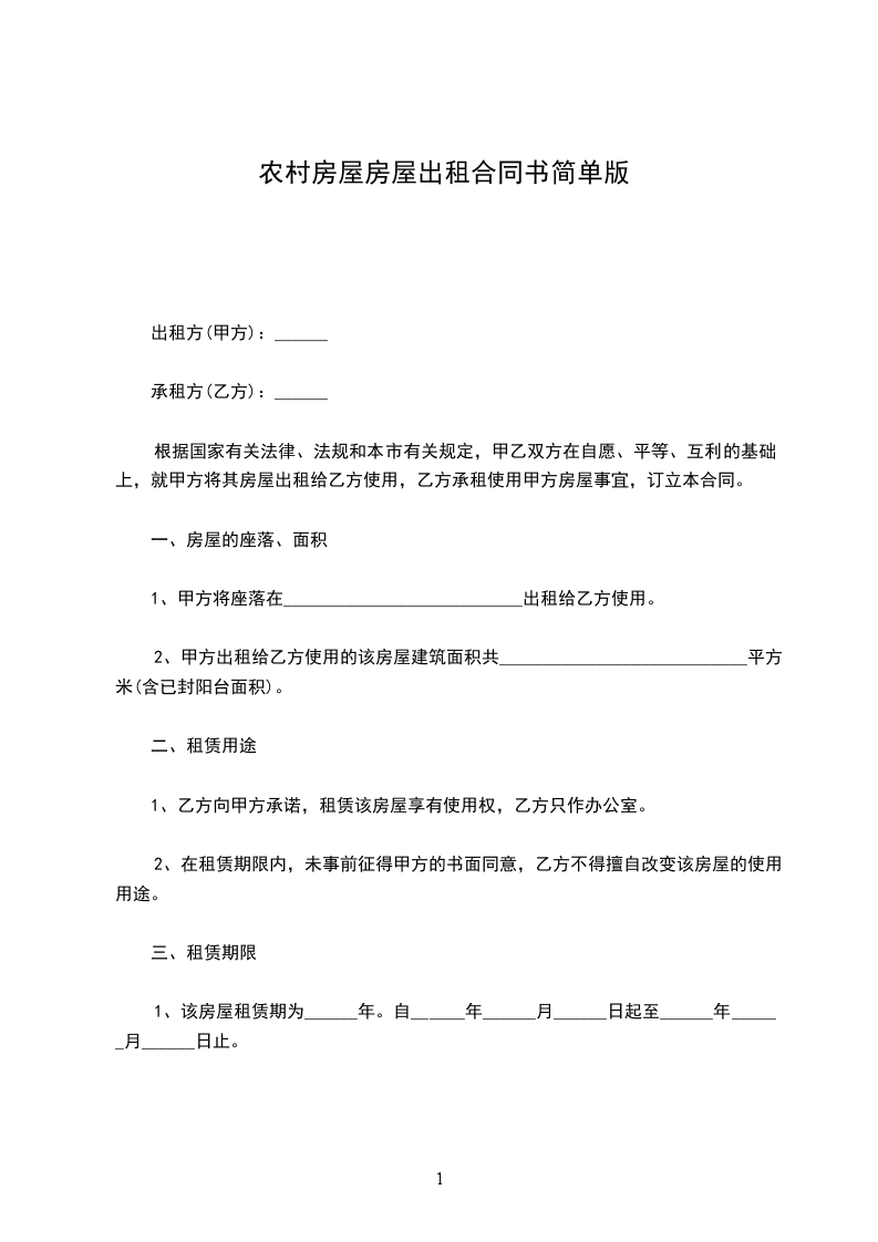 一、租房从_________年_________月_________日起至_________年_________月_________日止。