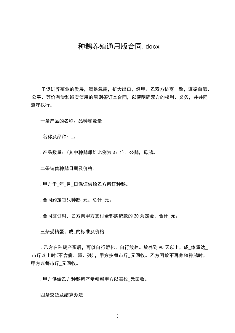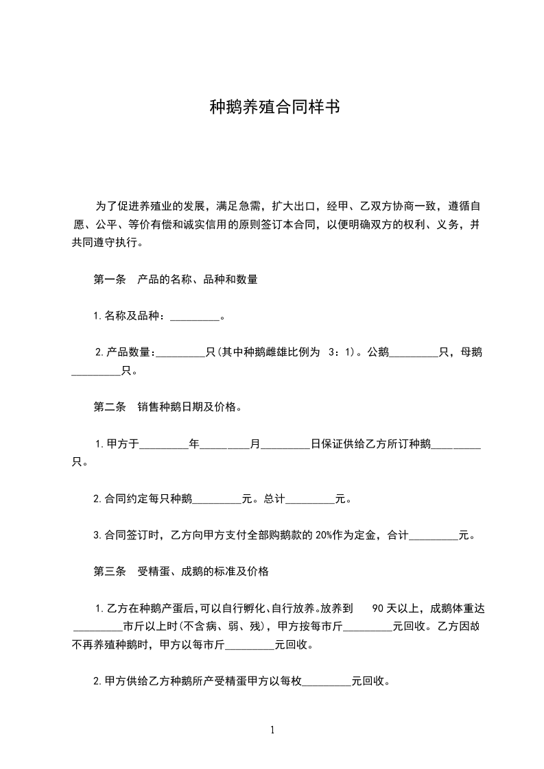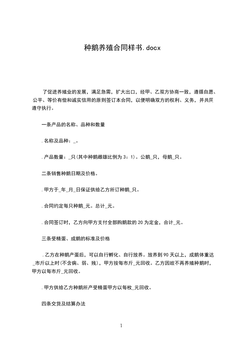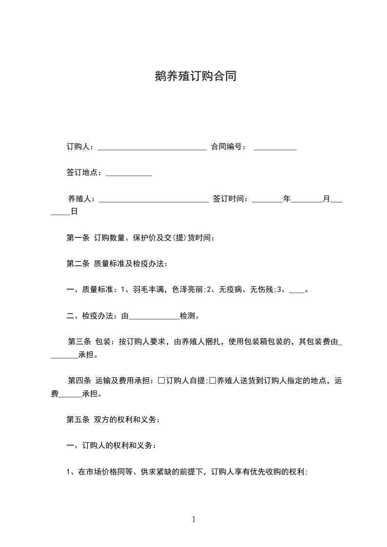 1.甲方于_________年_________月_________日保证供给乙方所订种鹅_________只。
