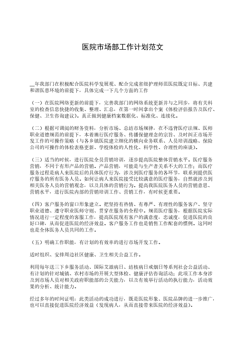 (二)根据可调阅的财务资料,分析市场、总结市场规律,在不违背医疗法规、医师职业道德规范的前提下,本着施行医疗服务、传播保健理念的宗旨、及时纠正市场开发工作的可操作策略(与各乡镇医院建立细化的横向业务联系、人员培训战略、保险公司的可操作的体检表格更新、学校体检的人性化、科学性、合理性的座谈)。