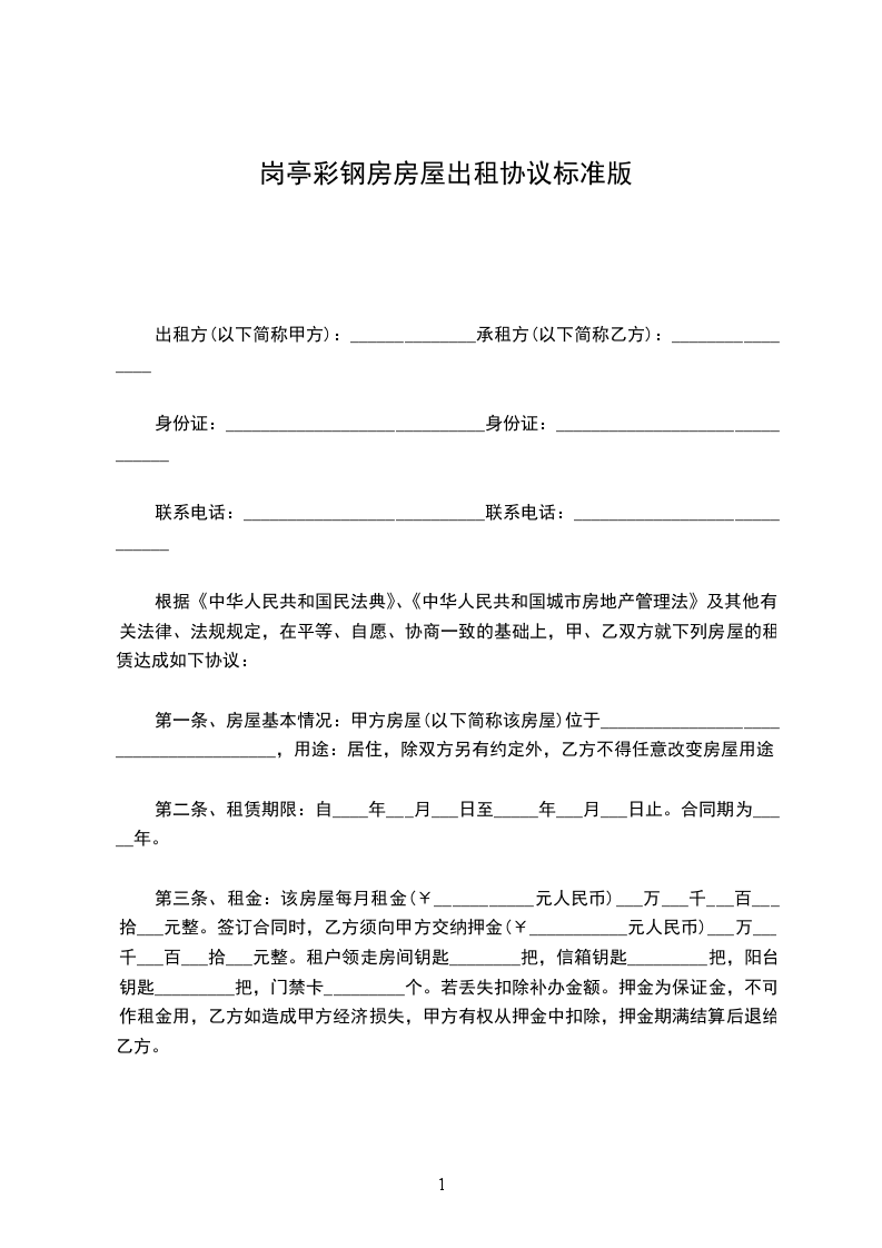 第一条、房屋基本情况:甲方房屋(以下简称该房屋)位于______________________________________,用途:居住,除双方另有约定外,乙方不得任意改变房屋用途。