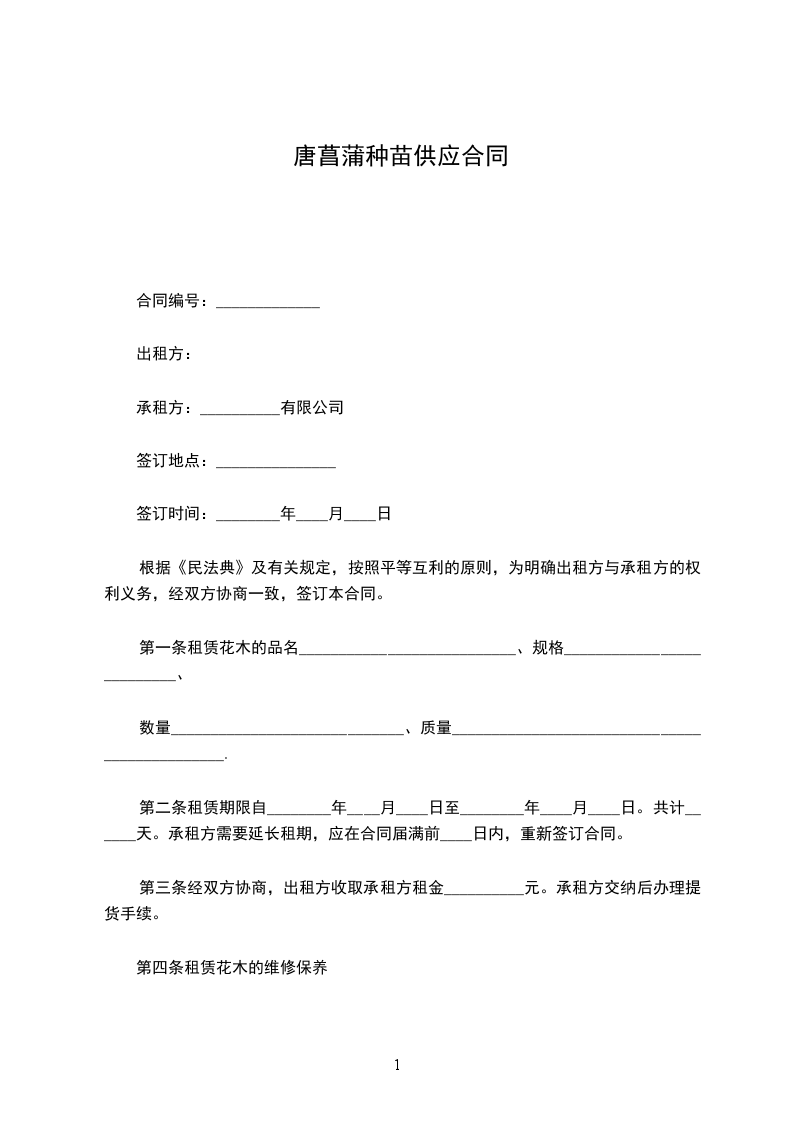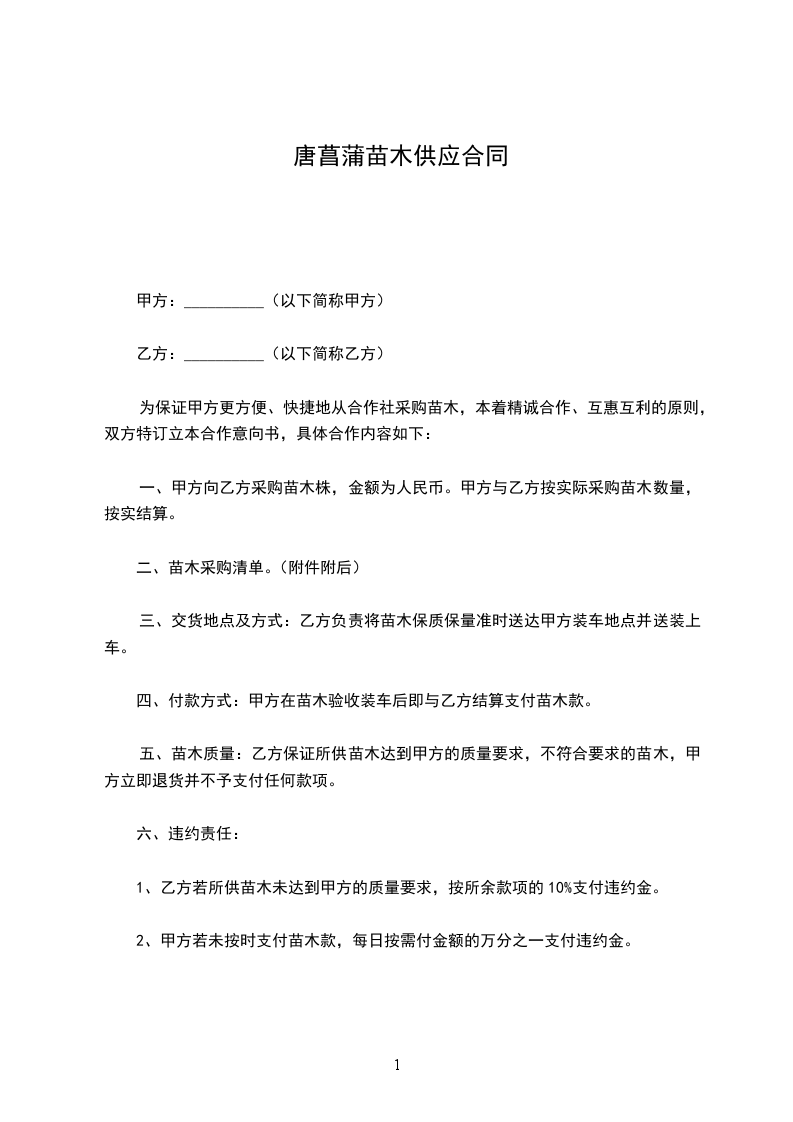 唐菖蒲种苗购销合同