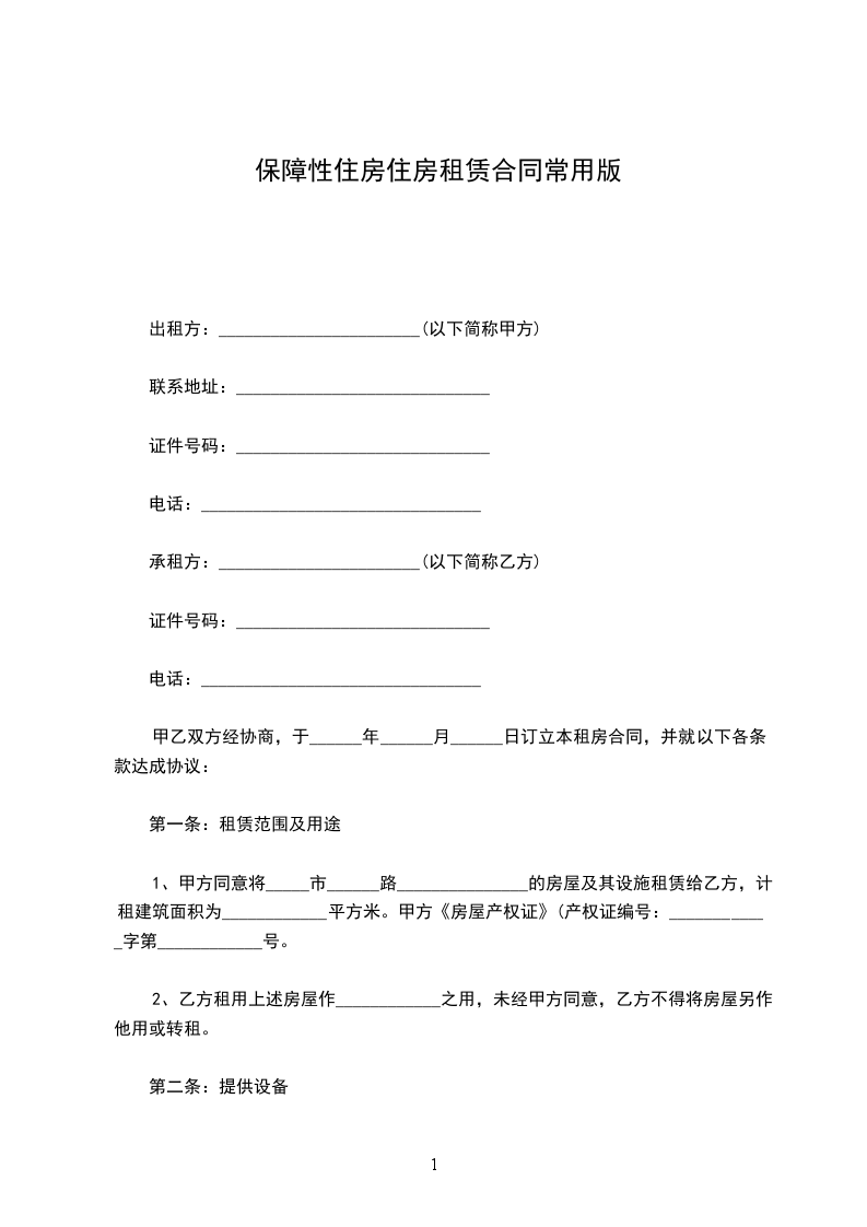 一、甲方将位于__________________租赁给乙方。甲方对所出租的房屋具有合法产权。