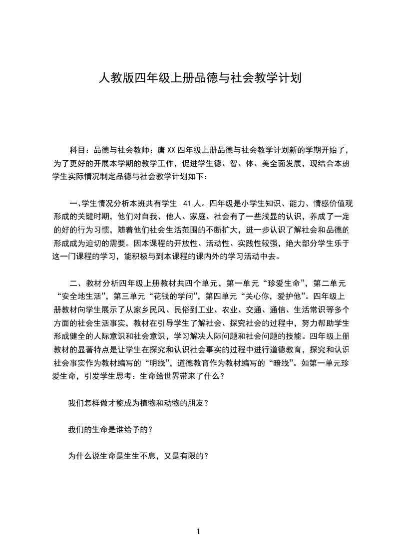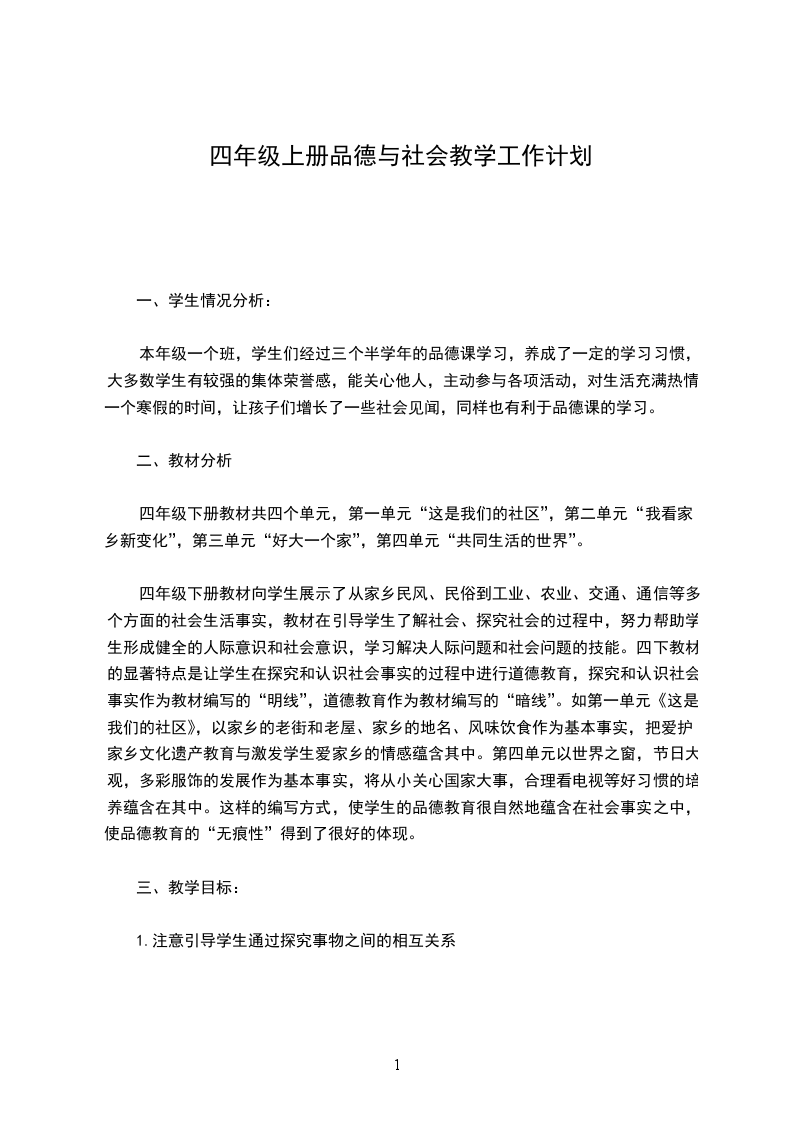 本年级一个班,学生们经过三个半学年的品德课学习,养成了一定的学习习惯,大多数学生有较强的集体荣誉感,能关心他人,主动参与各项活动,对生活充满热情。一个寒假的时间,让孩子们增长了一些社会见闻,同样也有利于品德课的学习。