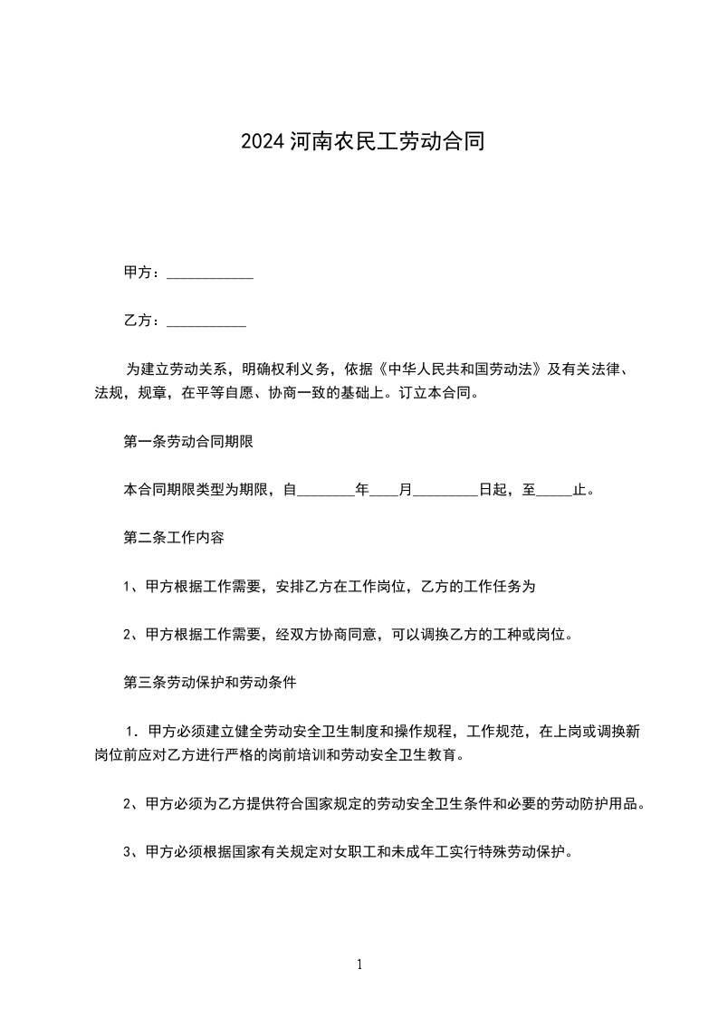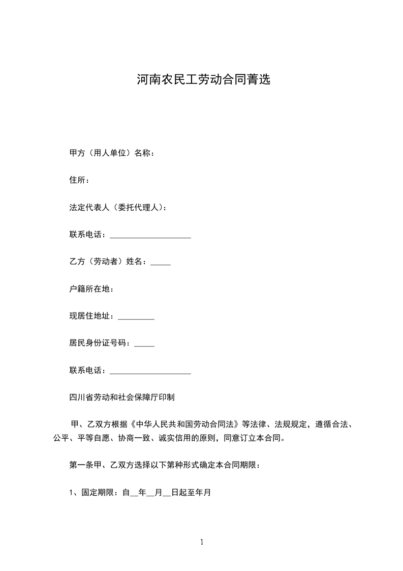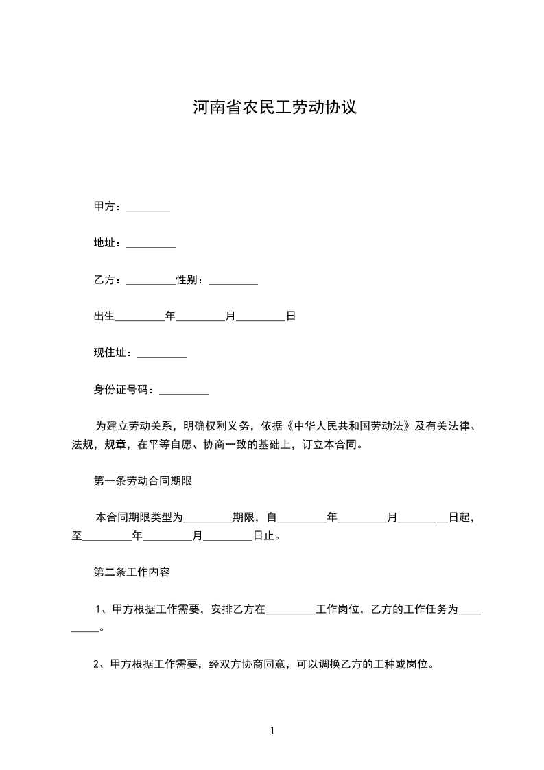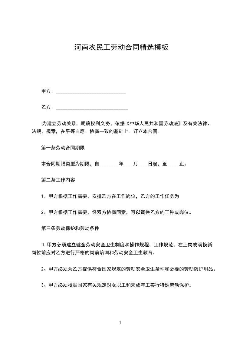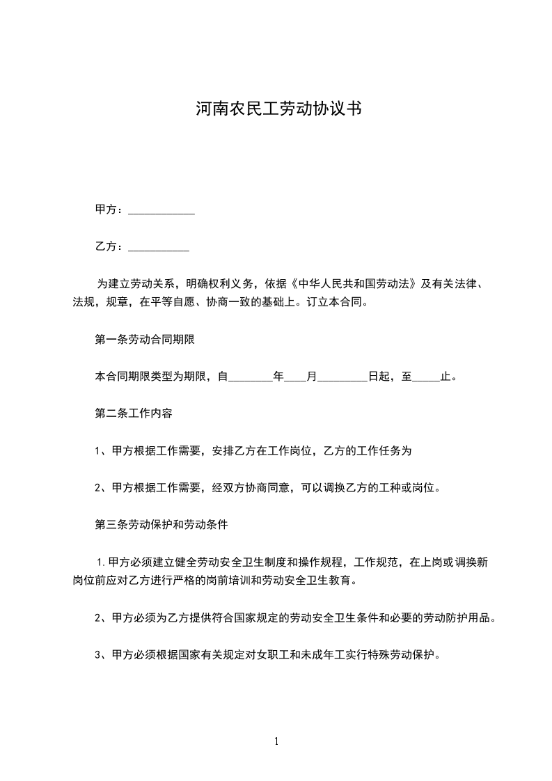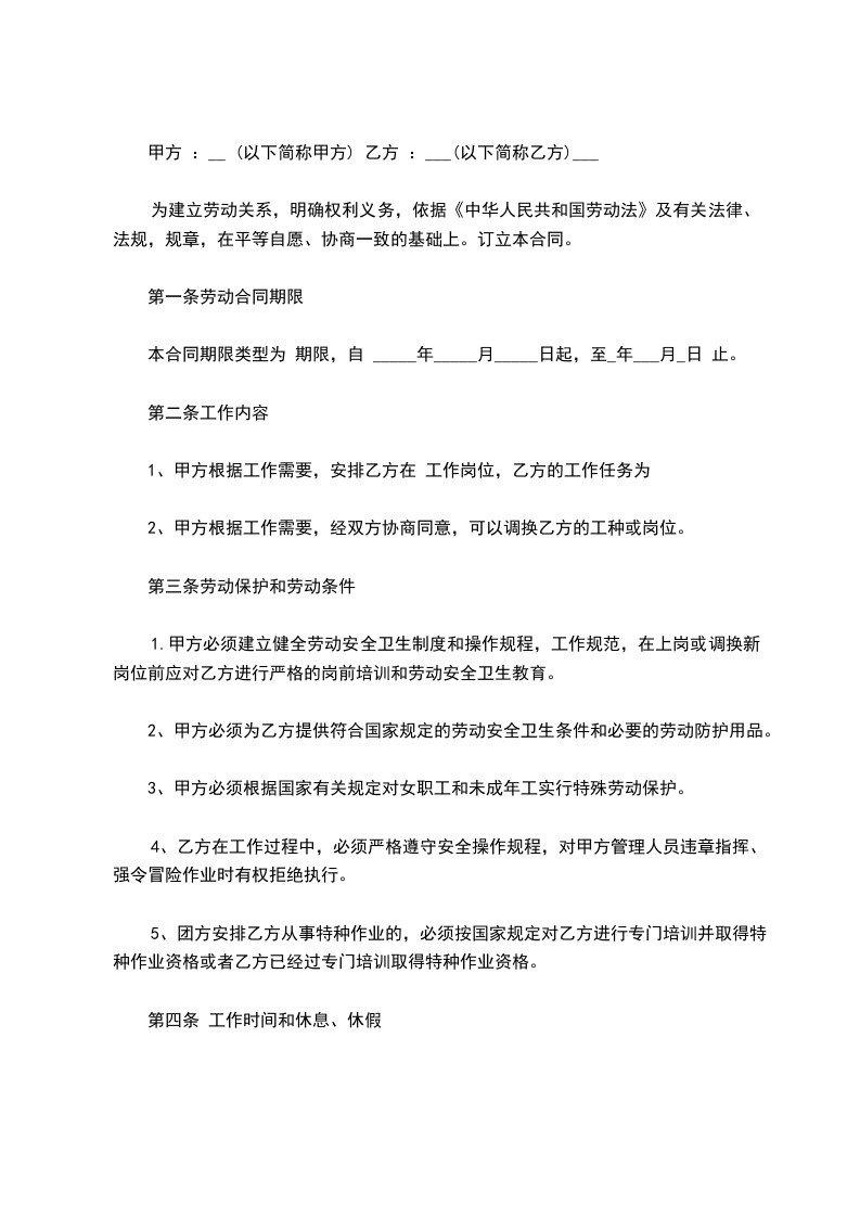 第一条劳动合同期限