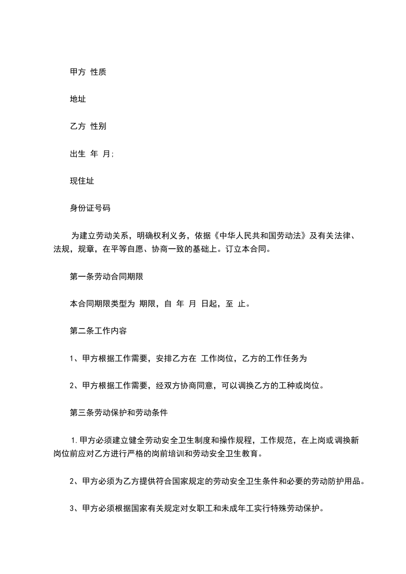 3、甲方必须根据国家有关规定对女职工和未成年工实行特殊劳动保护。