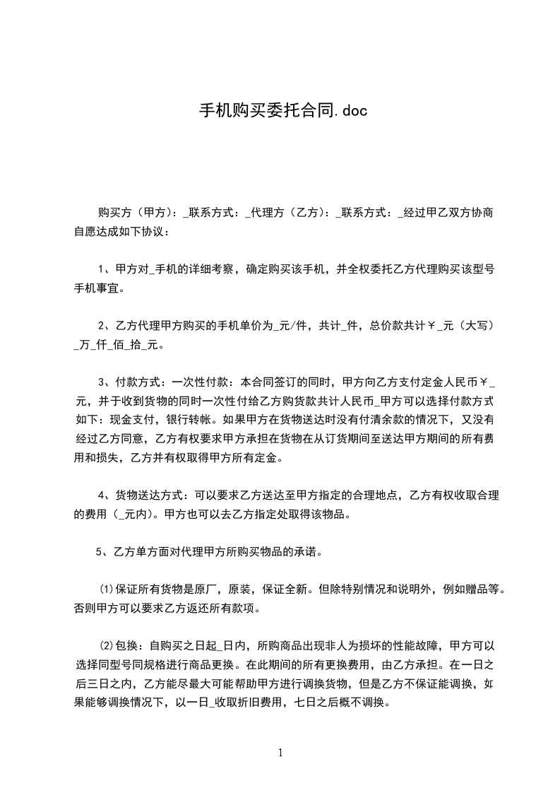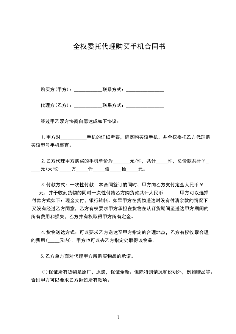 1.甲方对___________手机的详细考察,确定购买该手机,并全权委托乙方代理购买该型号手机事宜。
