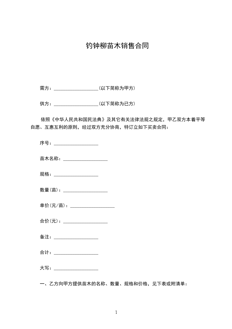 需方:___________________(以下简称为甲方)
