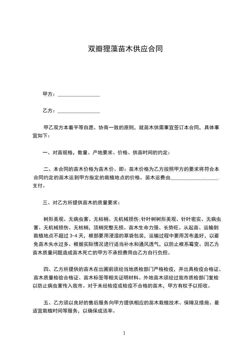 4、本合同为苗木买卖合同,乙方不承担甲方苗木成活率任何风险,但有为甲方提供技术指导的义务。
