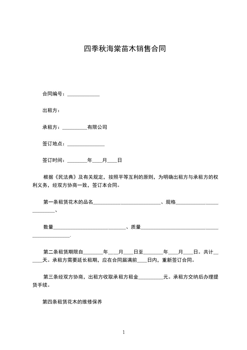 甲方向乙方采购苗木______株,金额为______人民币。甲方与乙方按实际采购苗木数量,按实结算。