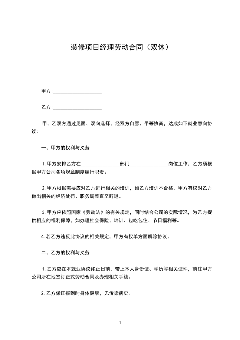 甲、乙双方通过见面、双向选择,经双方自愿、平等协商,达成如下就业意向协议: