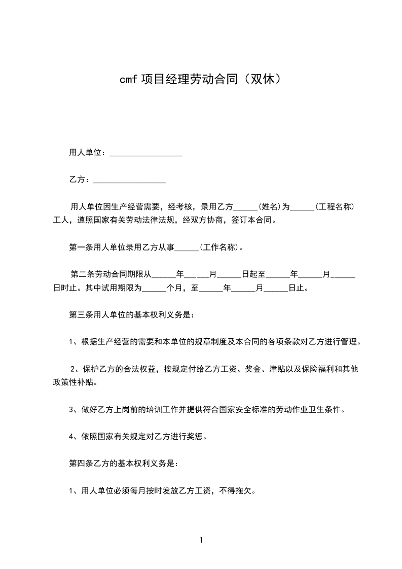 1.甲方安排乙方在________________部门________________岗位工作,乙方须根据甲方公司各项规章制度履行职责。