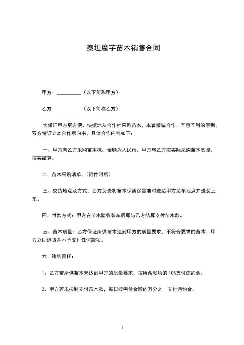 一、甲方向乙方采购苗木株,金额为人民币。甲方与乙方按实际采购苗木数量,按实结算。