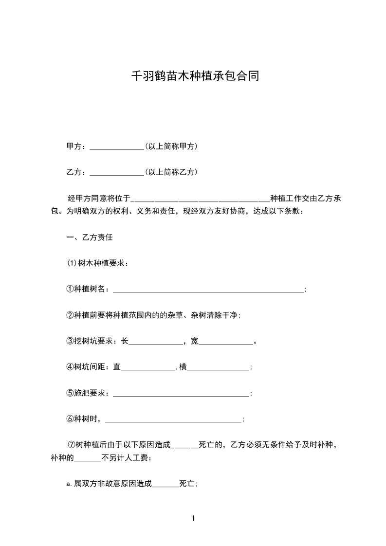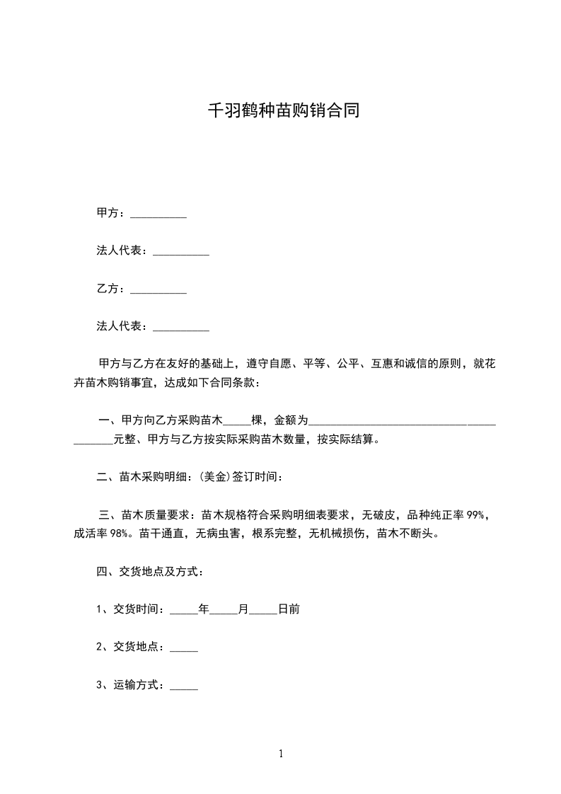 一、甲方向乙方采购苗木_____棵,金额为________________________________________元整、甲方与乙方按实际采购苗木数量,按实际结算。
