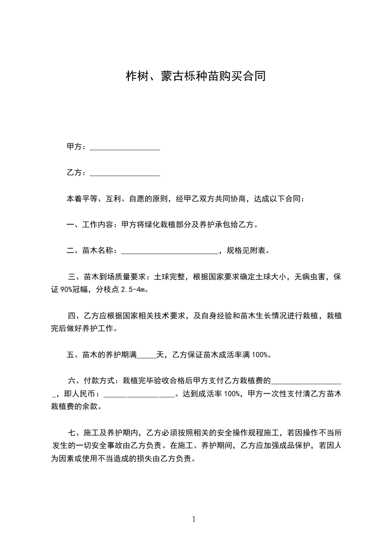 购苗方:________________(以下简称甲方)