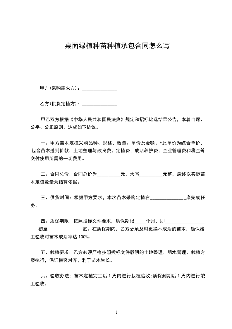 一、甲方向乙方采购苗木_______株,金额为人民币________。甲方与乙方按实际采购苗木数量,按实结算。