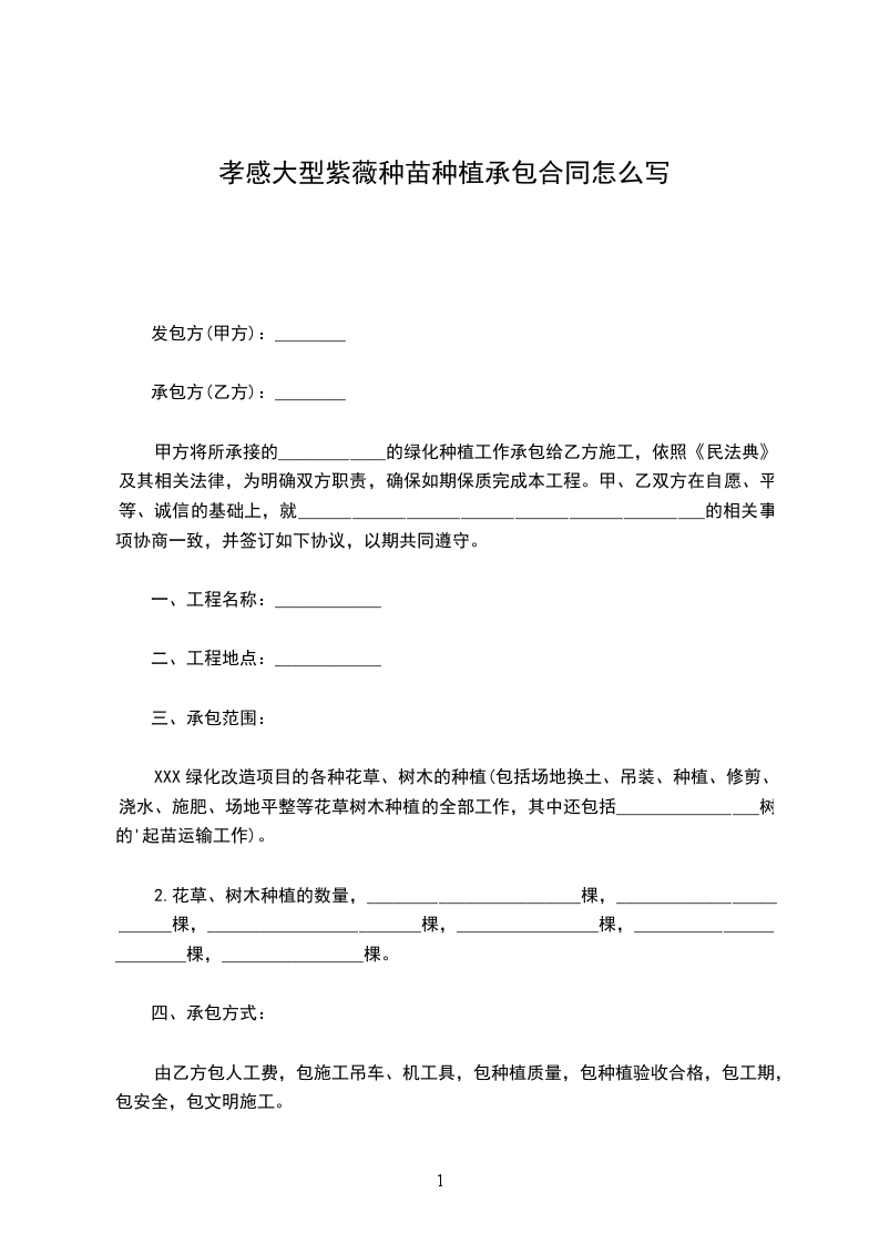 甲方向乙方采购苗木,具体的苗木品种为_______________________,规格为________厘米,数量为________株,树龄为________年。