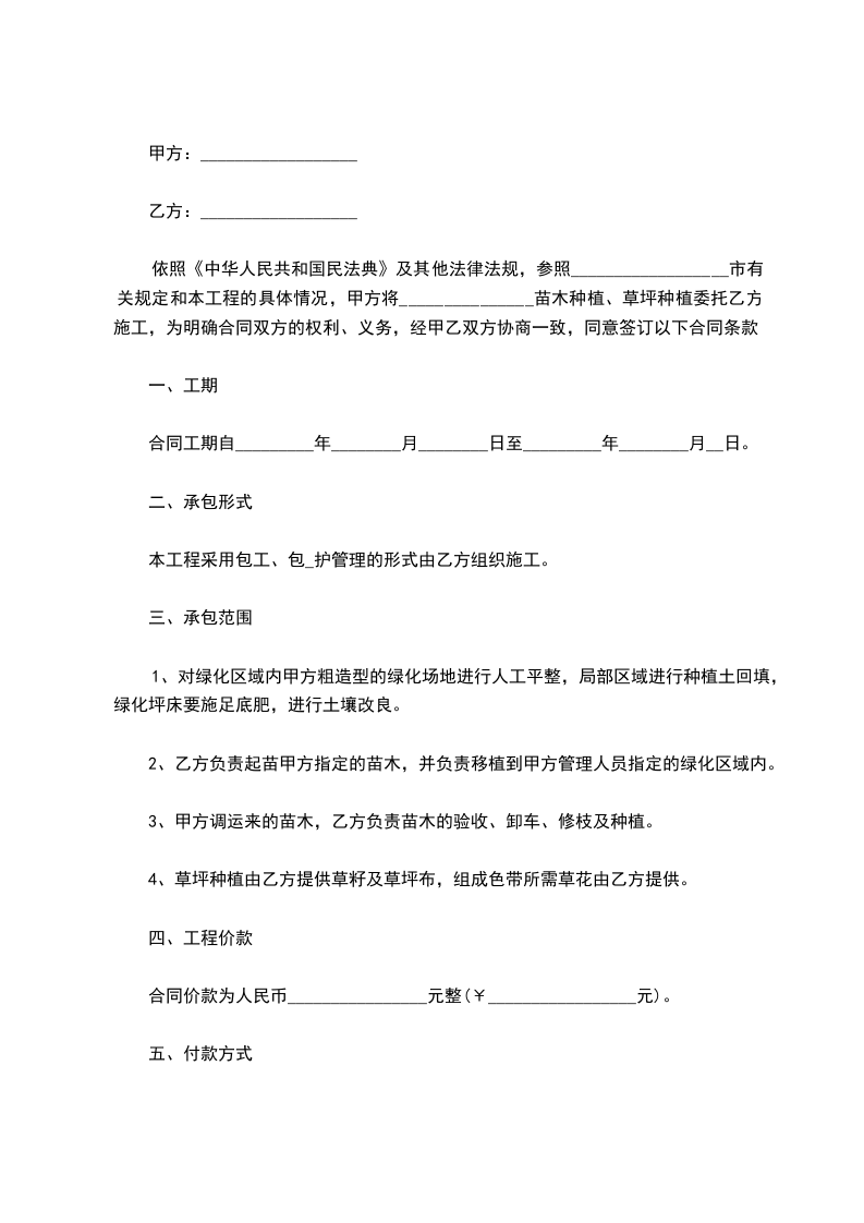 一、甲方向乙方采购________________________________苗木________株,金额为人民币.甲方与乙方按实际采购苗木数量,按实结算。