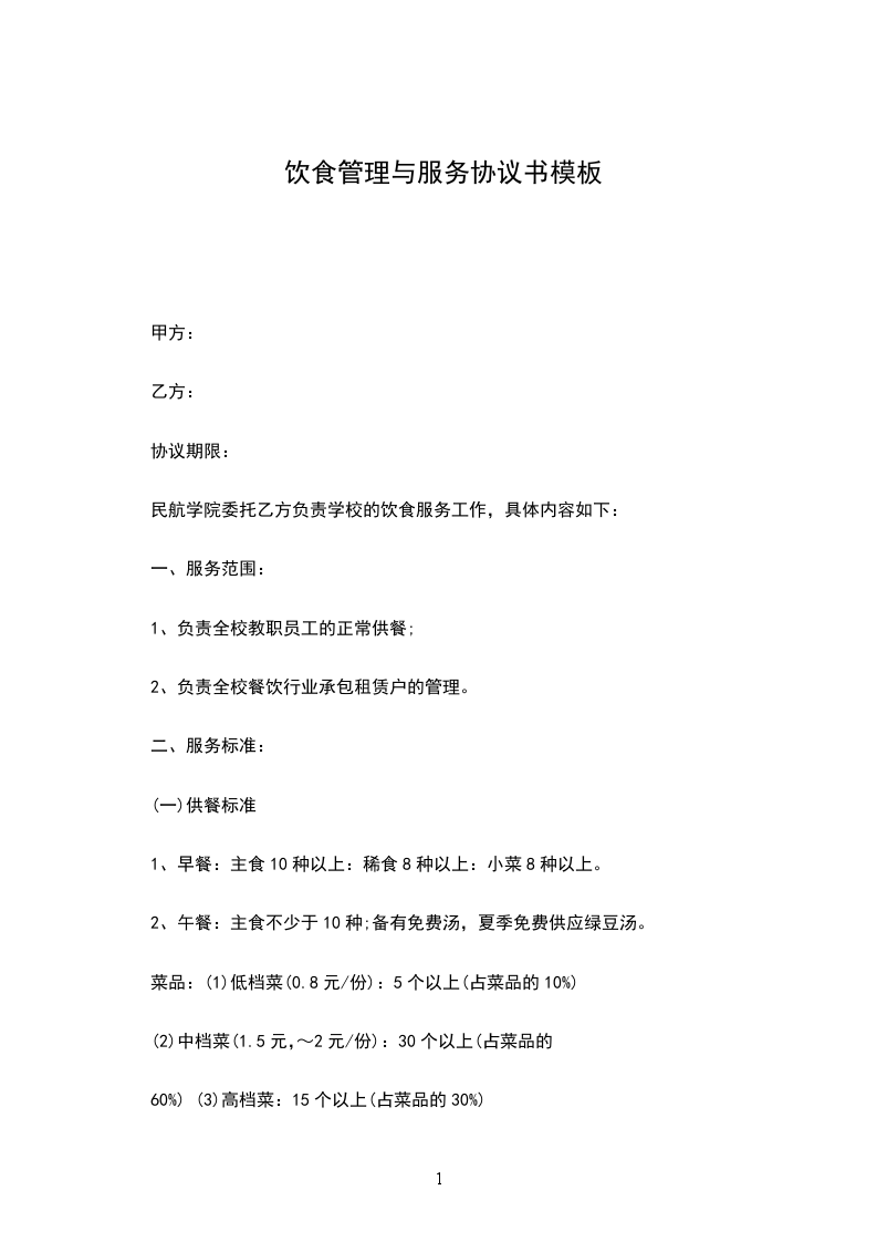 民航学院委托乙方负责学校的饮食服务工作,具体内容如下: