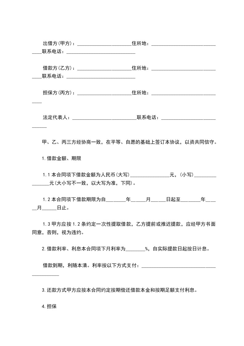 1.1 本合同项下借款金额为人民币(大写) 元,(小写) 元(大小写不一致,以大写为准,下同)。