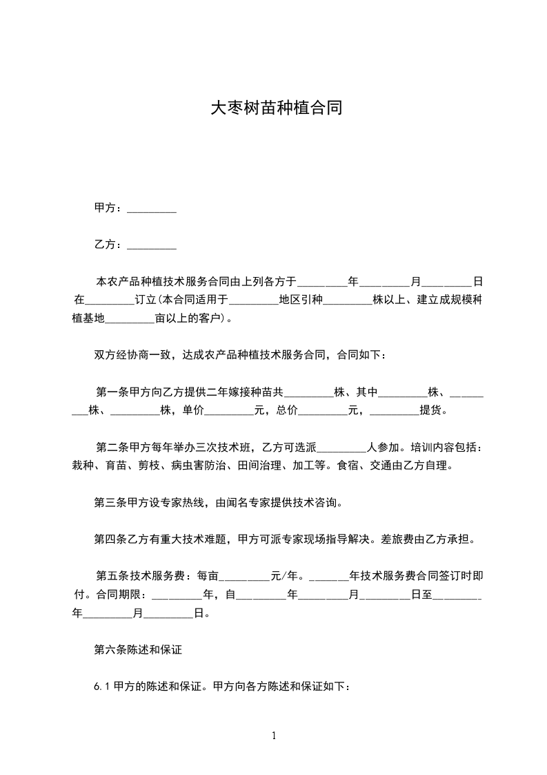 1.购销苗木品种、数量、价格、提货时间