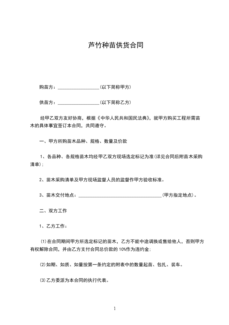 供苗方:__________________(以下简称乙方)