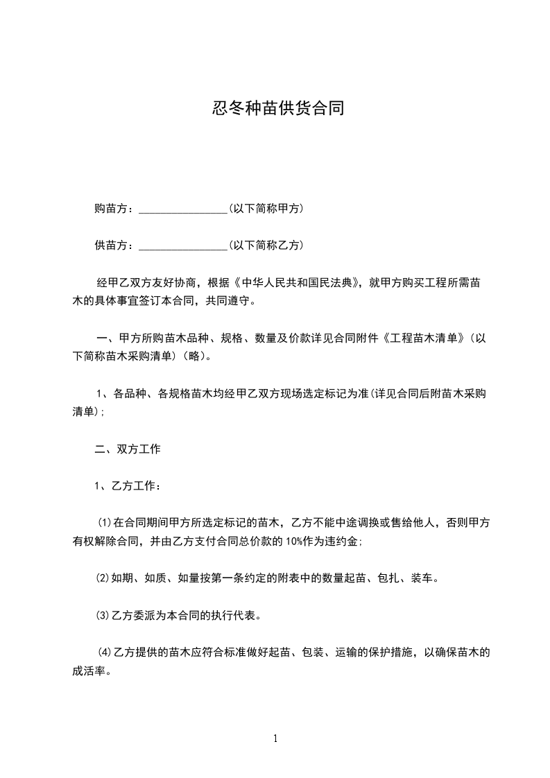 供苗方:________________(以下简称乙方)
