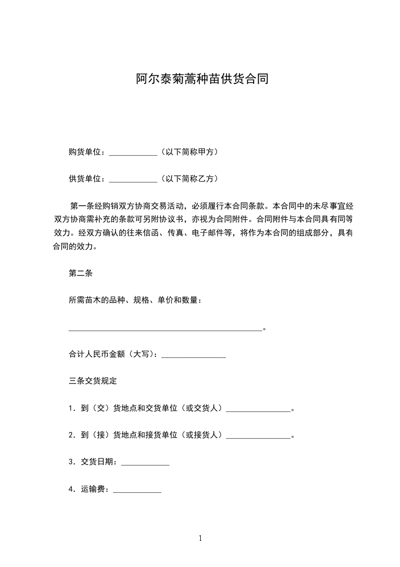 供货单位:____________(以下简称乙方)
