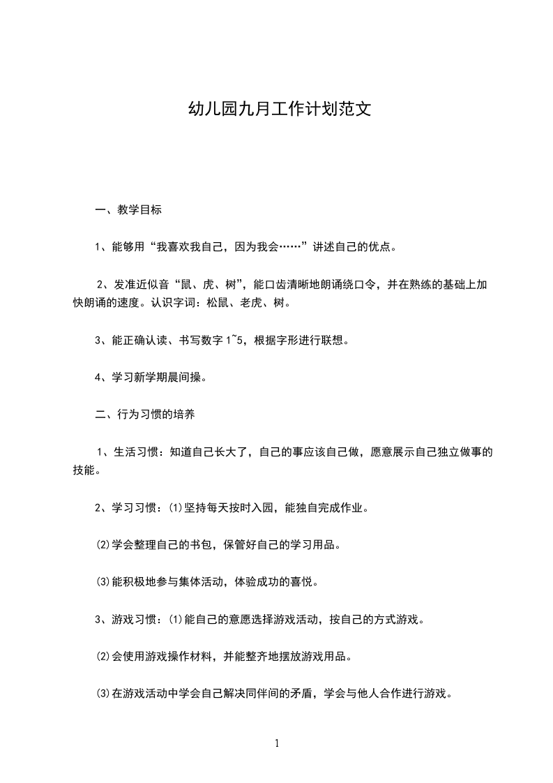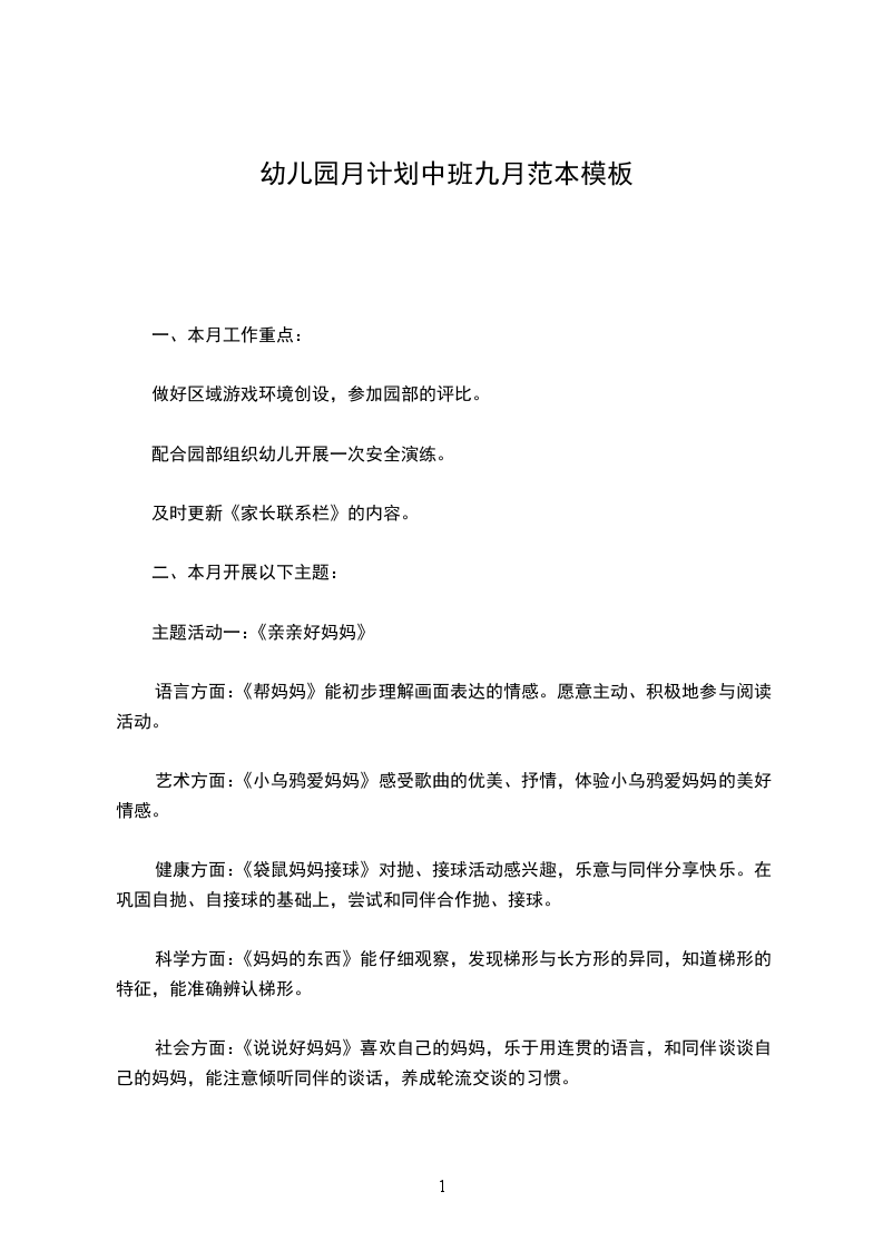 9月份蒙氏和五大领域教学计划