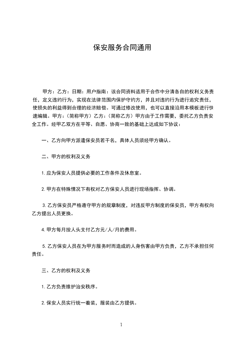 一、乙方向甲方派遣保安员若干名,具体人员须经甲方确认。