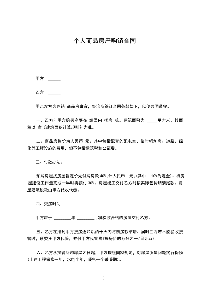 六、乙方从接管所购房屋之日起,甲方按照国家规定,对房屋质量问题实行保修(土建工程保修一年,水电半年,暖气一个采暖期)。