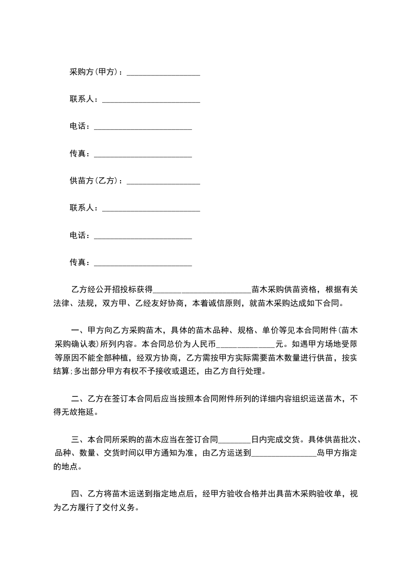 4.若一方终止合同,应向另一方赔偿经济损失。若遇天灾苗木损失严重,则甲方在提苗木前2个月通知乙方按比例缩减。