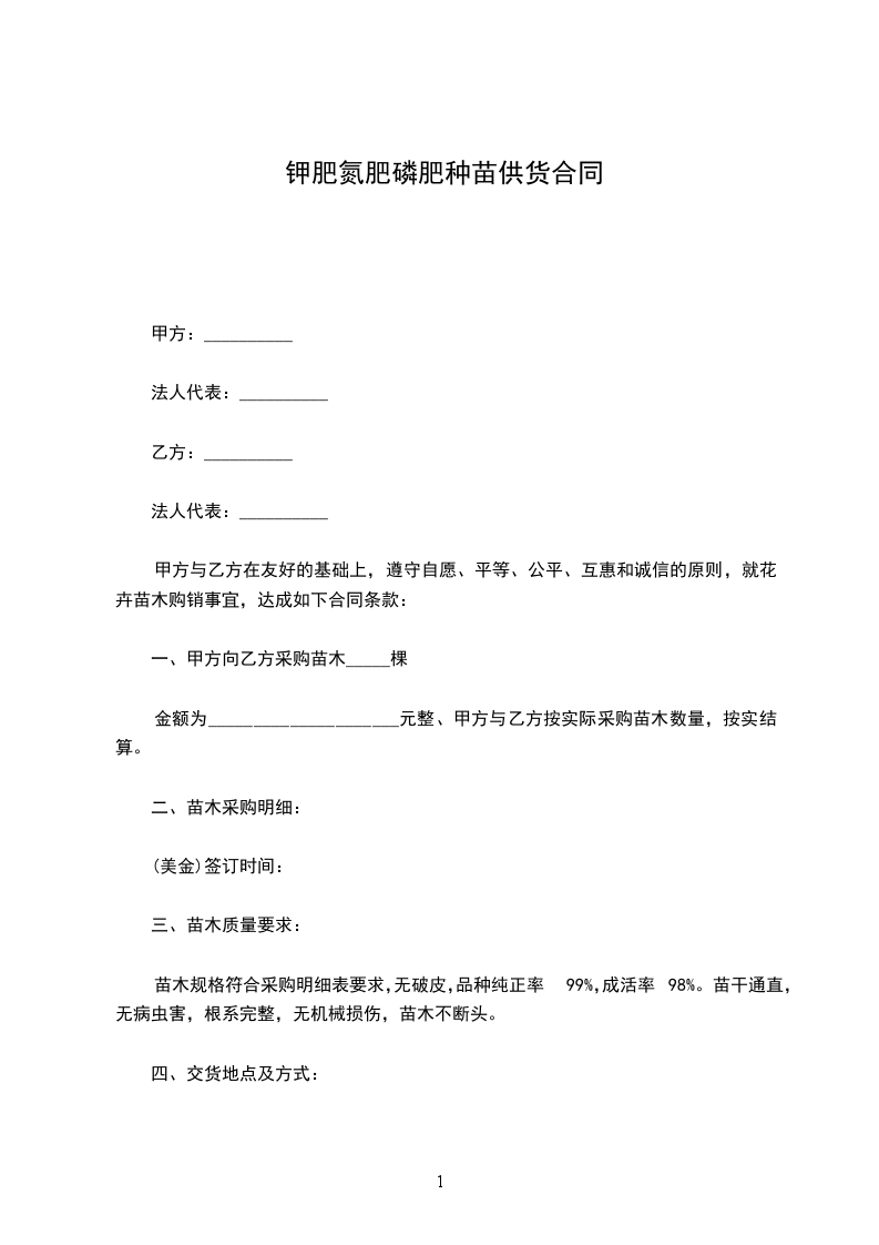 一、甲方向乙方采购苗木_____棵