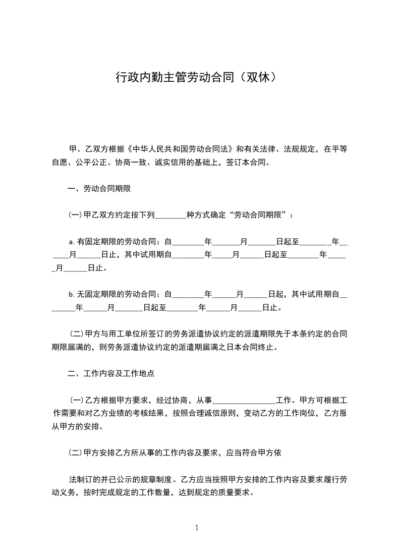 第三条甲方根据工作岗位的实际需要,安排乙方从事管理工作,具体以岗位聘任书为准。乙方工作地点为____________________。甲方有权根据公司发展需要调整乙方工作岗位。
