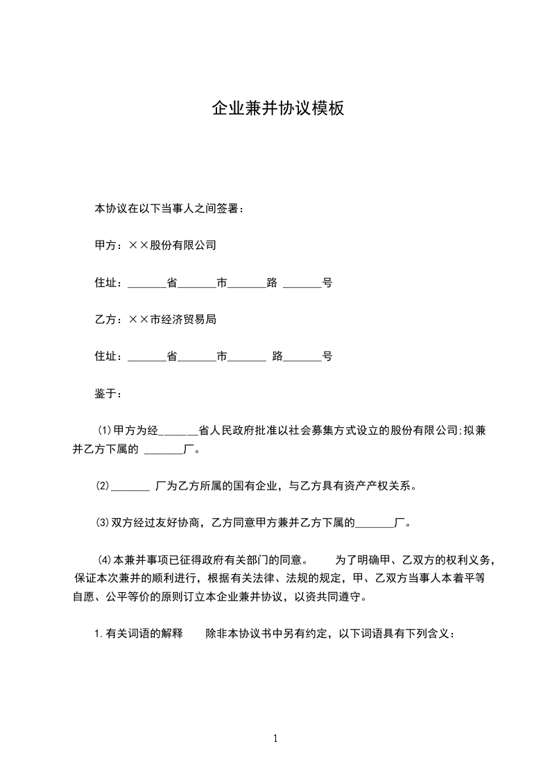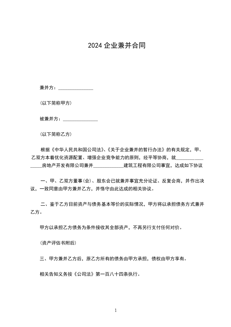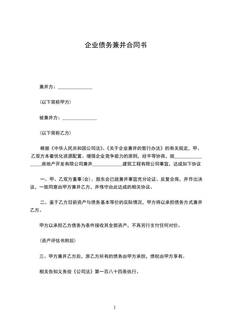 企业兼并合同通用范本