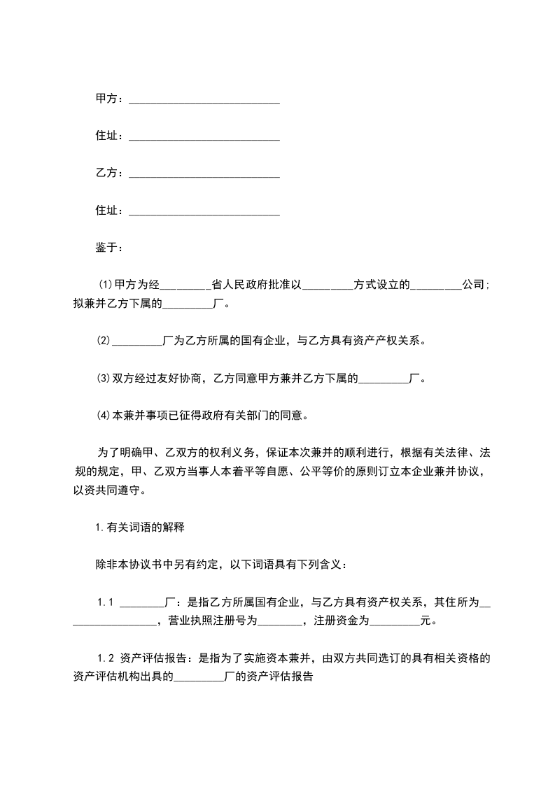 2.3 甲方在兼并_________厂后,其有关业务由甲方经营管理,并由甲方享有和承担相关的权利及义务。