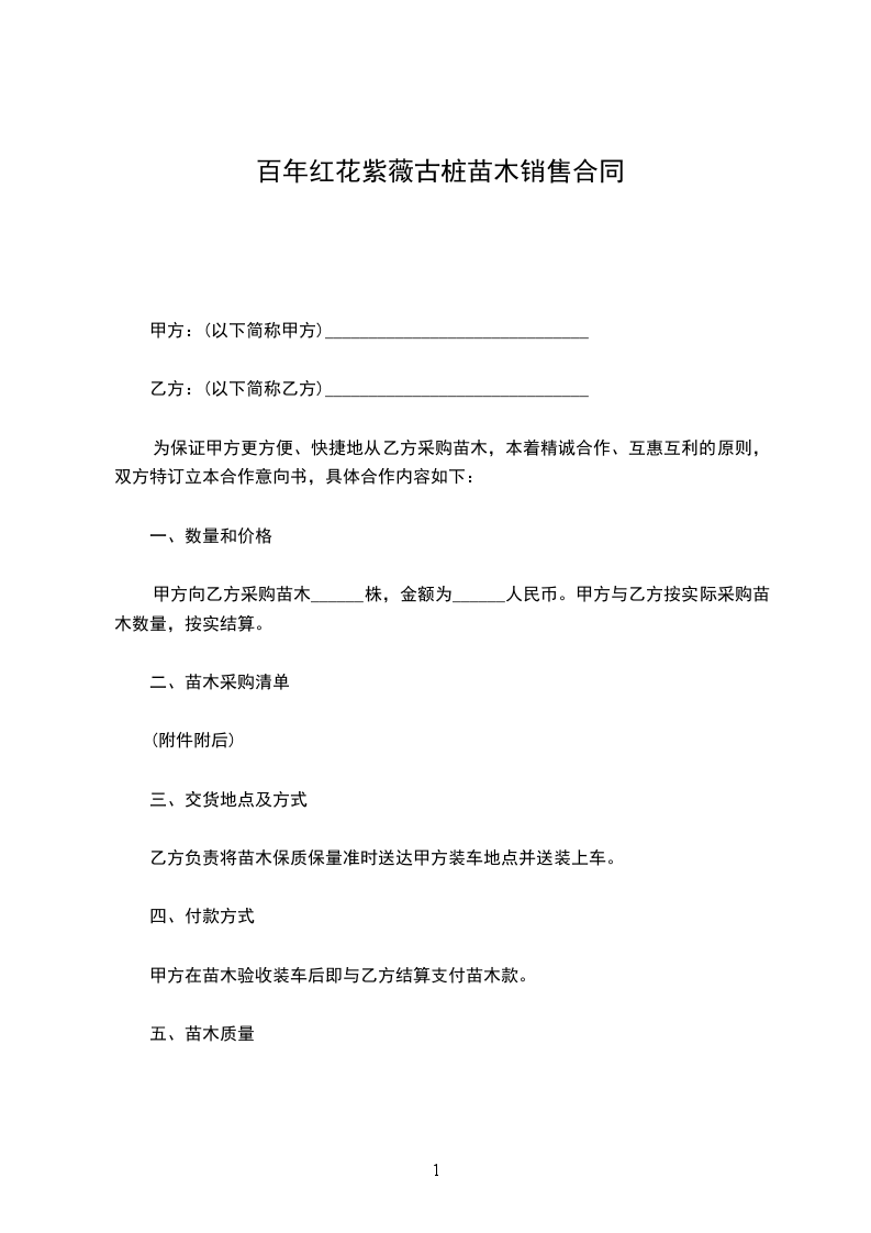 甲方向乙方采购苗木______株,金额为______人民币。甲方与乙方按实际采购苗木数量,按实结算。