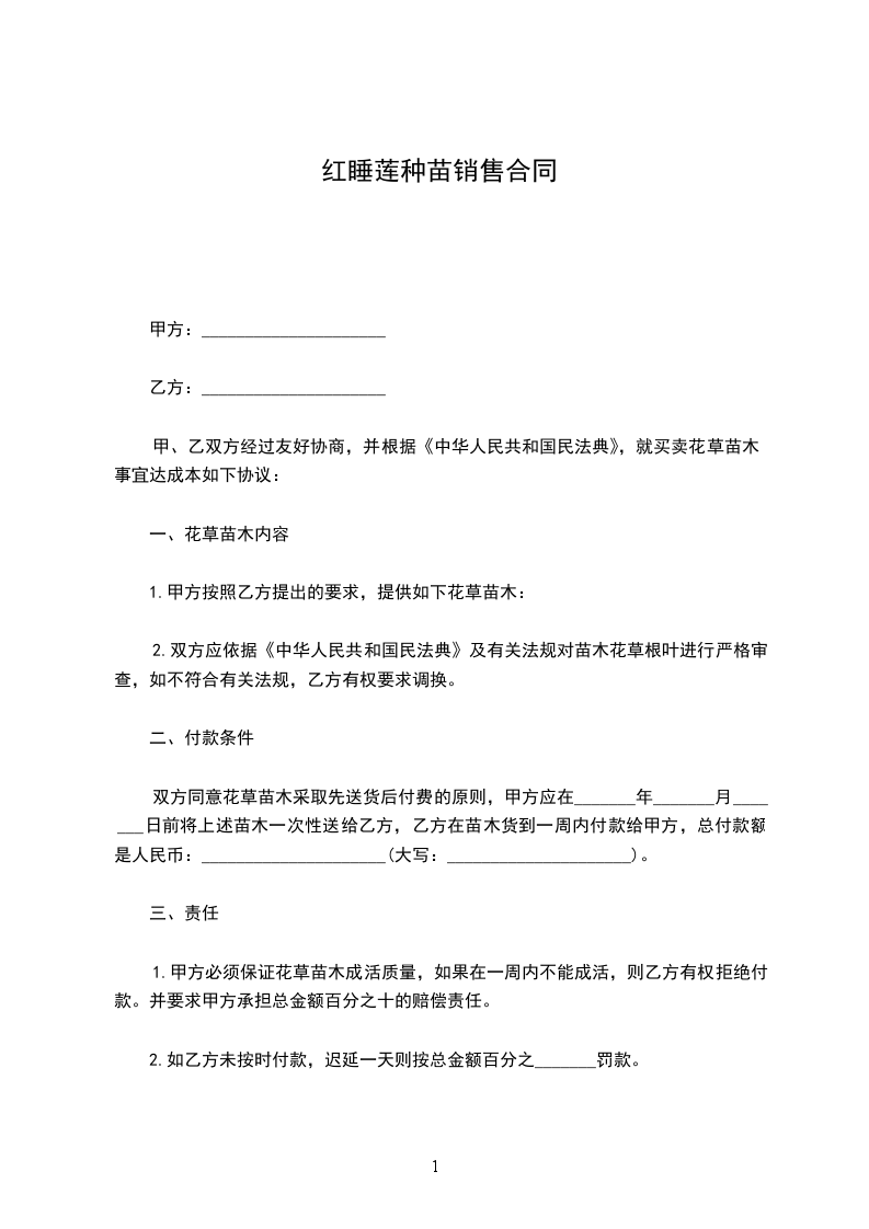甲、乙双方经过友好协商,并根据《中华人民共和国民法典》,就买卖花草苗木事宜达成本如下协议: