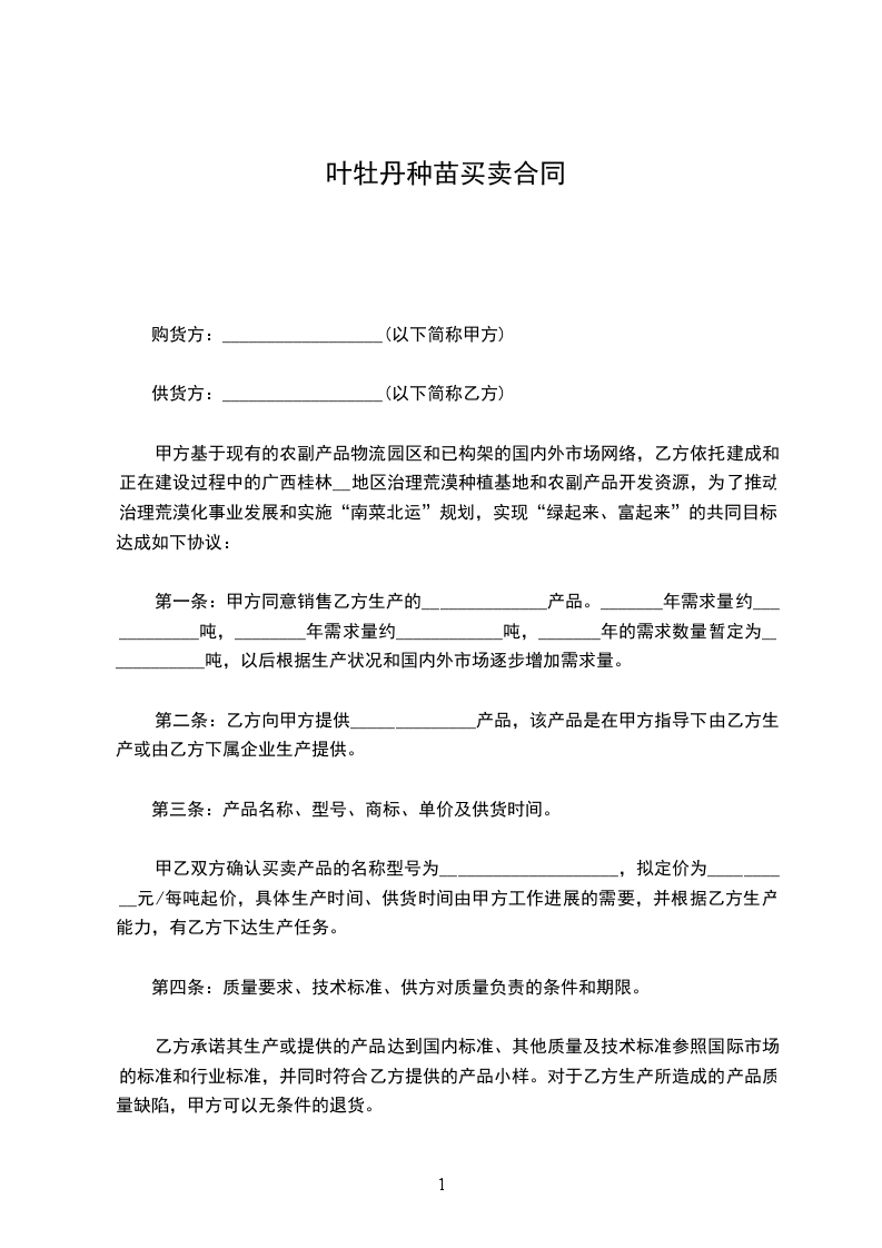 1、如果甲方违反合同的规定,到时不回购乙方种植的达到合同规定规格及质量的“森禾”牌大苗,则甲方需支付给乙方不回购的合格“森禾”牌大苗苗款_____%的违约金(单价以本合同规定的回购价为准)。