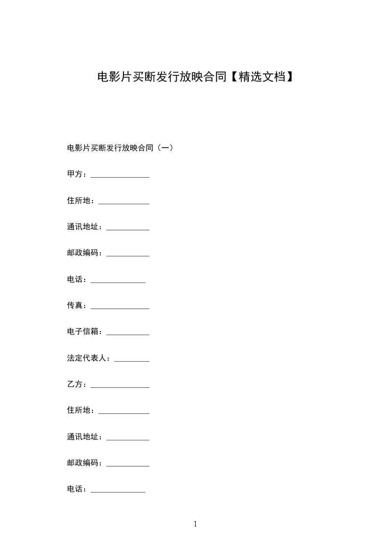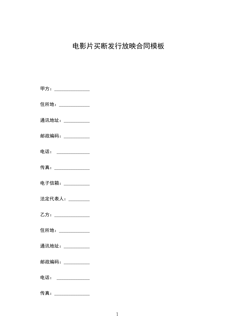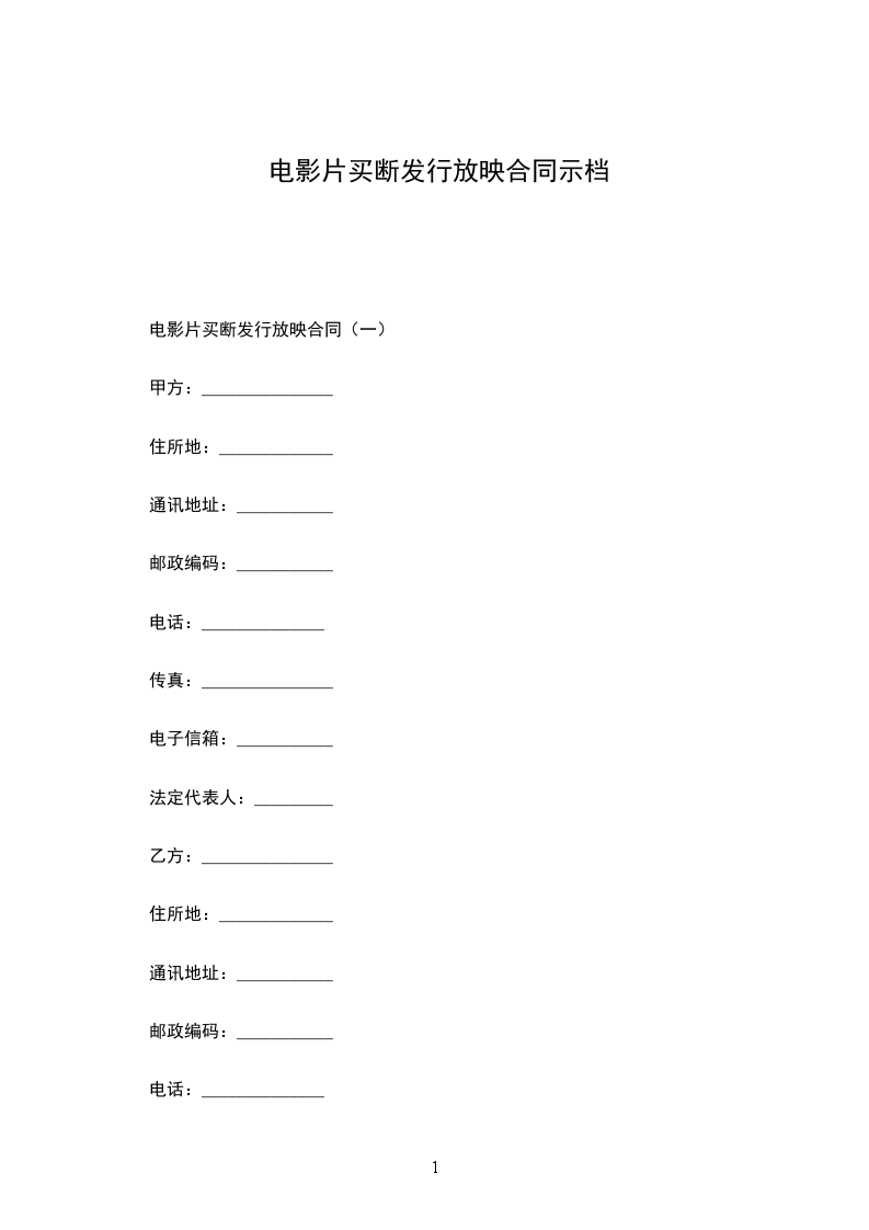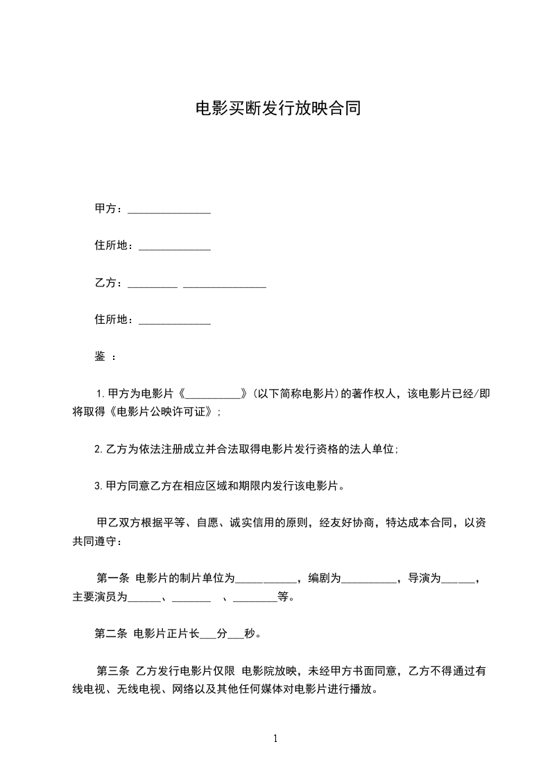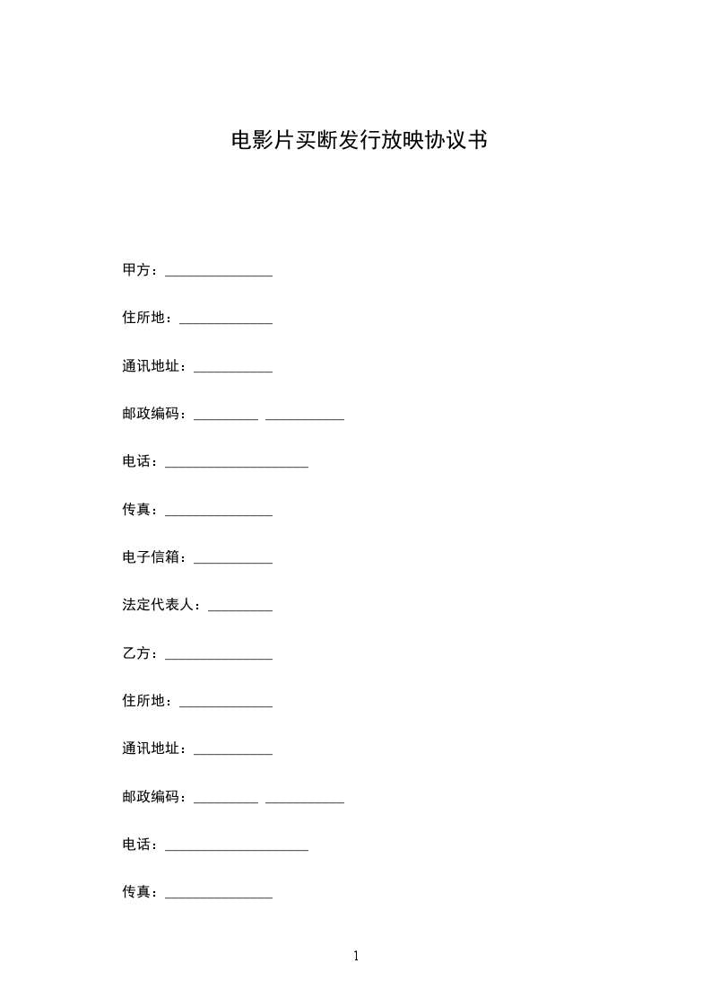 1.甲方为电影片《__________》(以下简称电影片)的著作权人,该电影片已经/即将取得《电影片公映许可证》;