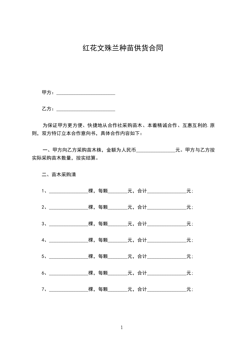 4、本合同为苗木买卖合同,乙方不承担甲方苗木成活率任何风险,但有为甲方提供技术指导的义务。