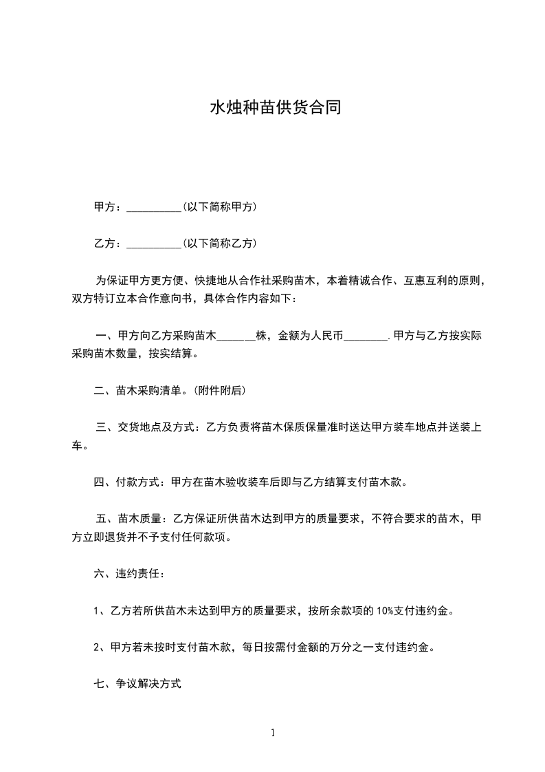 一、甲方向乙方采购苗木_______株,金额为人民币________.甲方与乙方按实际采购苗木数量,按实结算。