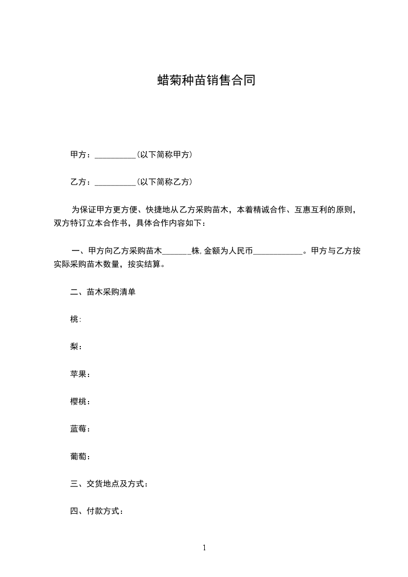 菊花种苗销售合同