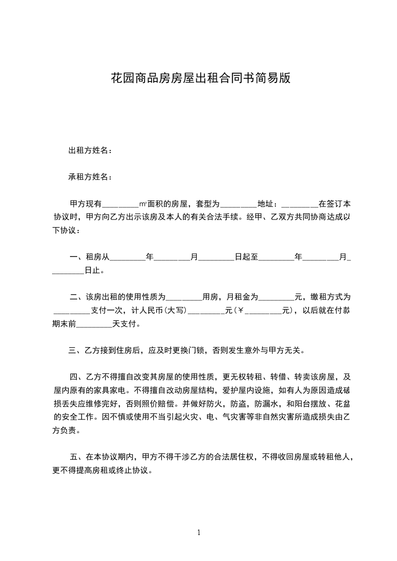 一、租房从_________年_________月_________日起至_________年_________月_________日止。