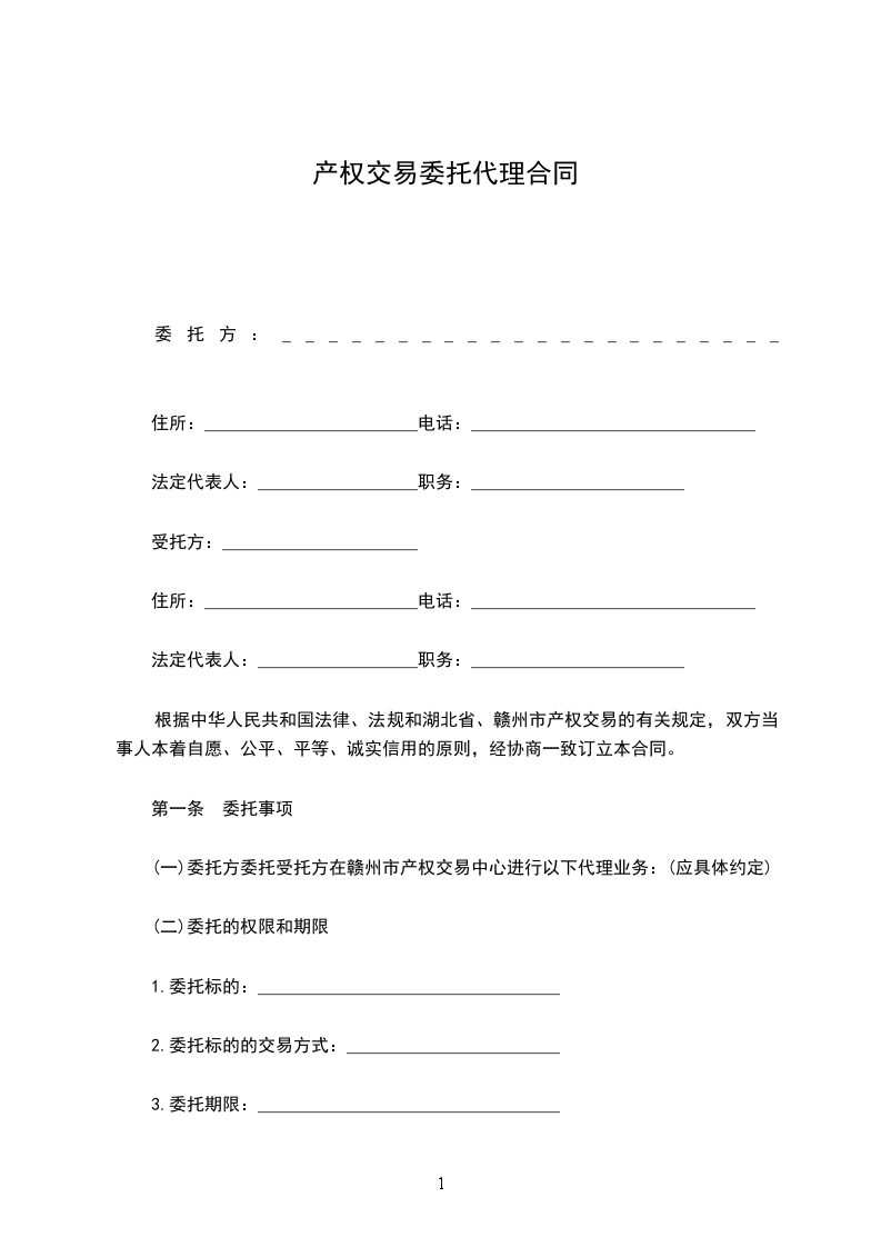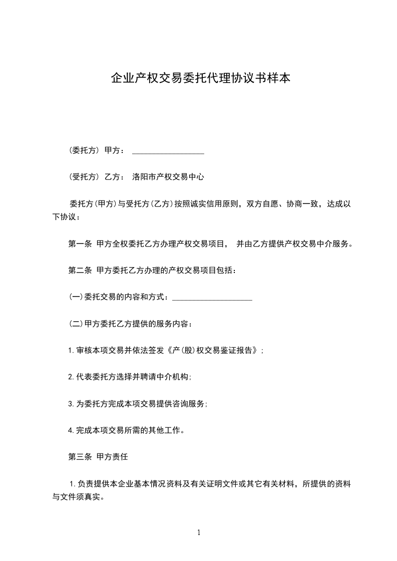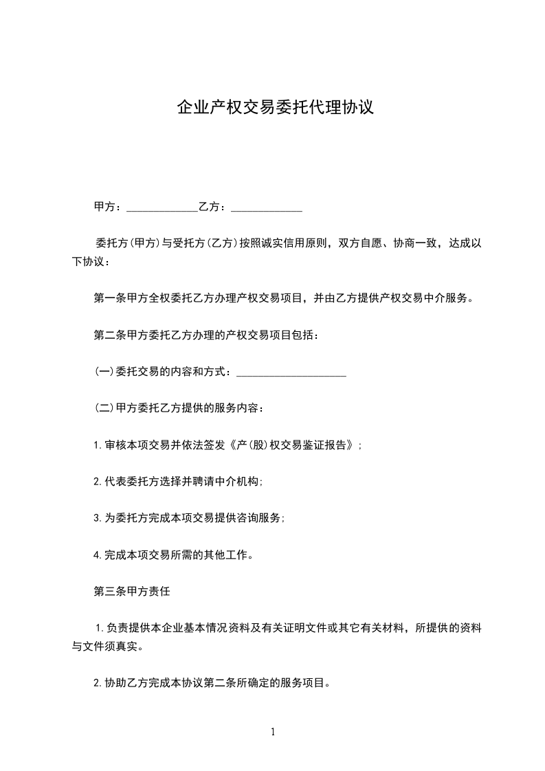 第一条 甲方全权委托乙方办理产权交易项目, 并由乙方提供产权交易中介服务。