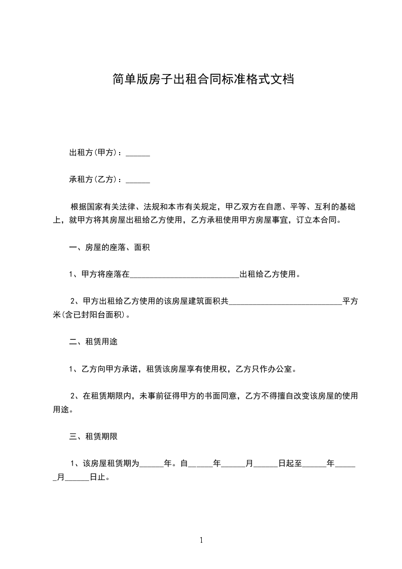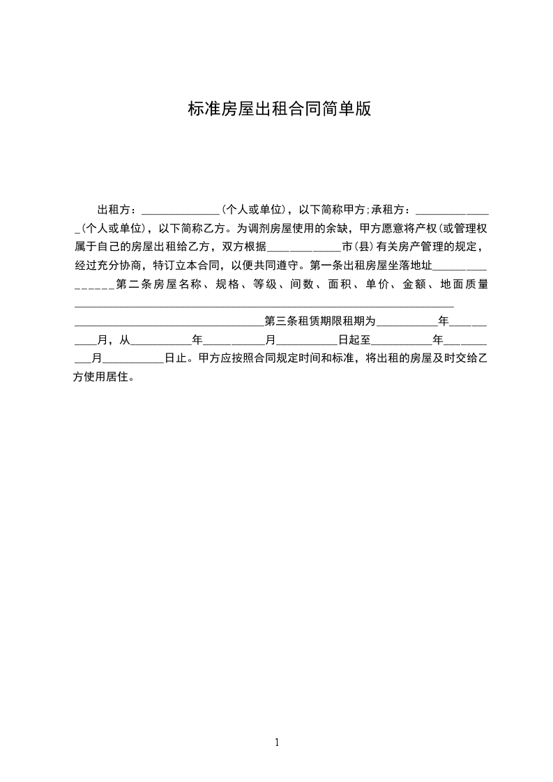 第一条本合同所指标的住房为_________________。乙方如果要增加合租人数,必须取得甲方书面同意。
