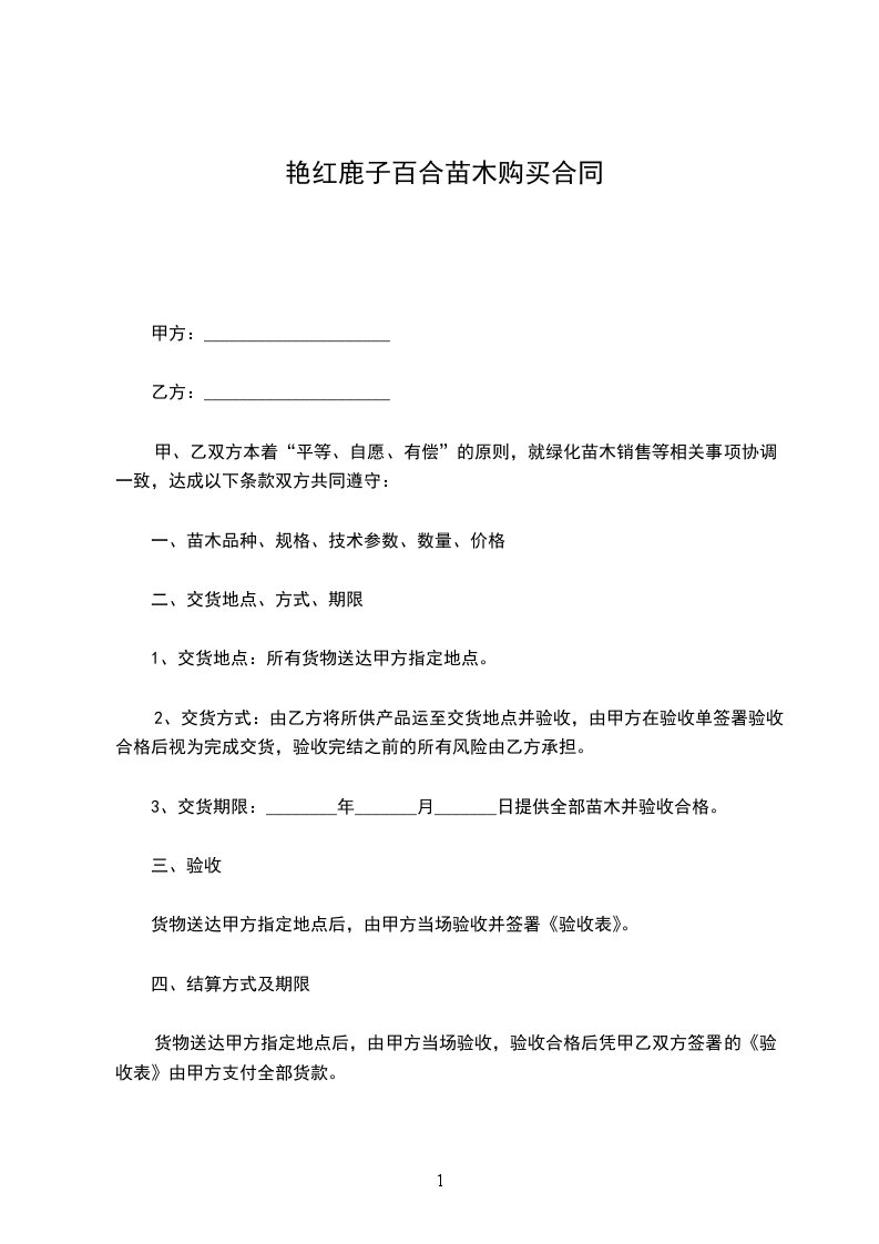 四、验收方式:甲方采购的苗木在乙方苗圃地附近装车,装车之前当场验收所采购的苗木,不符合甲方采购要求的当场退货。