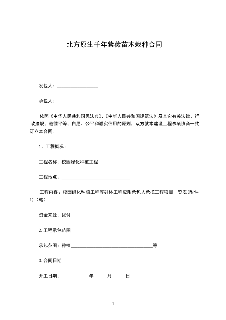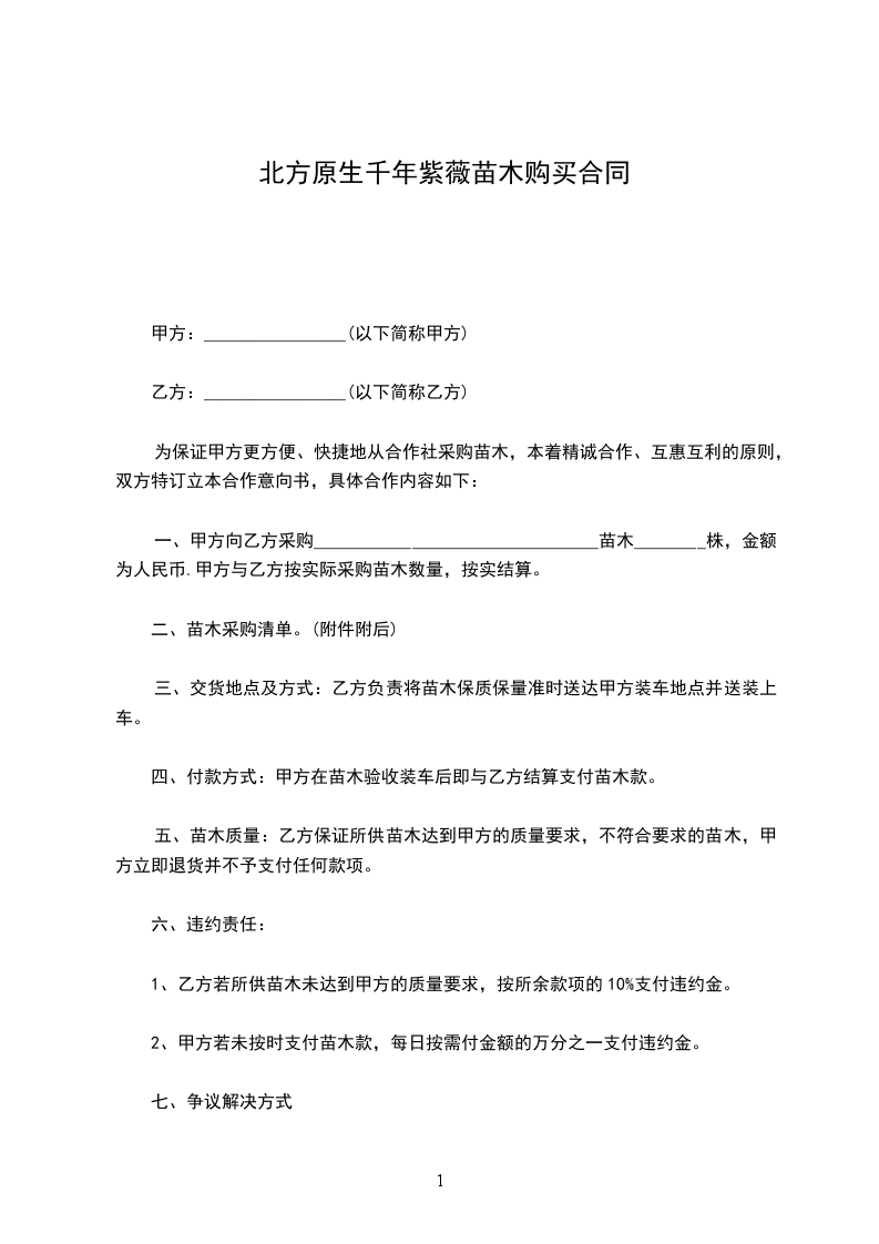 北方千年紫薇苗木销售合同