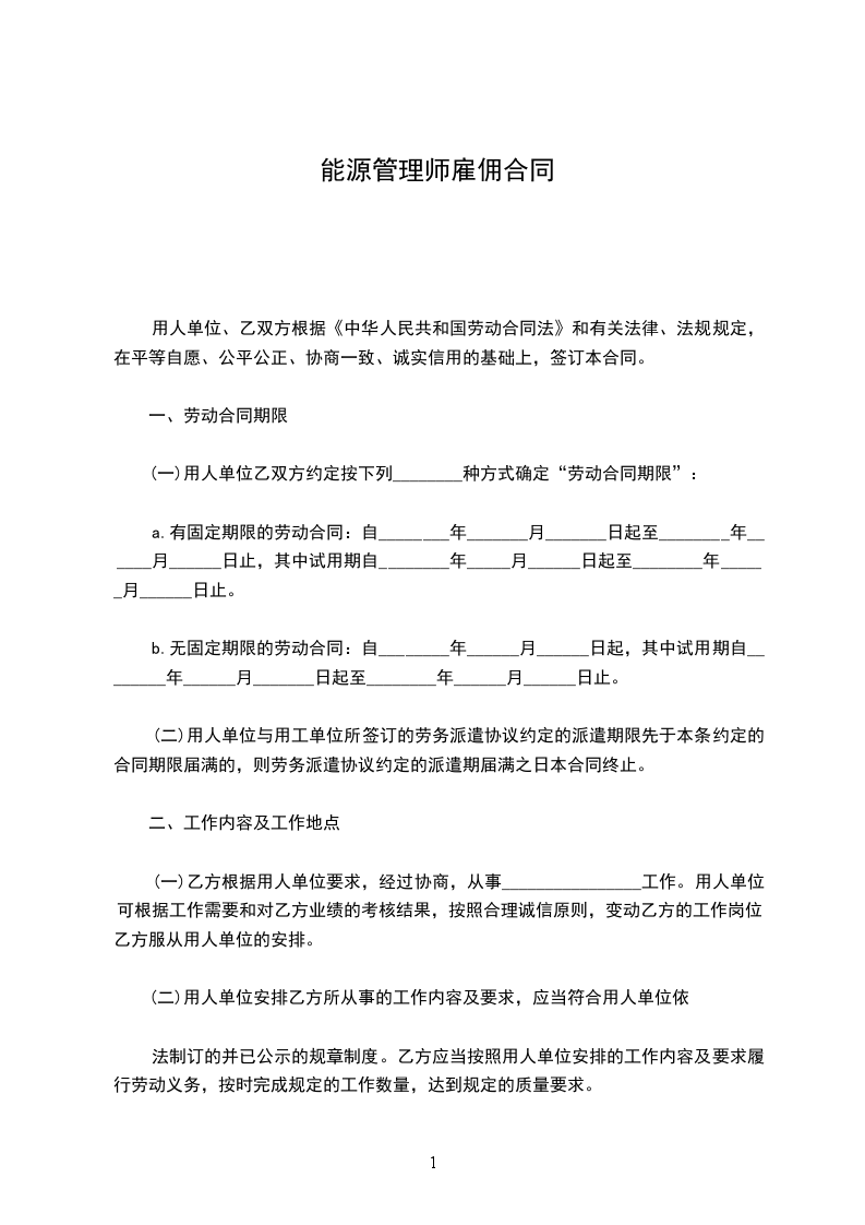 第一条用人单位录用乙方从事______(工作名称)。