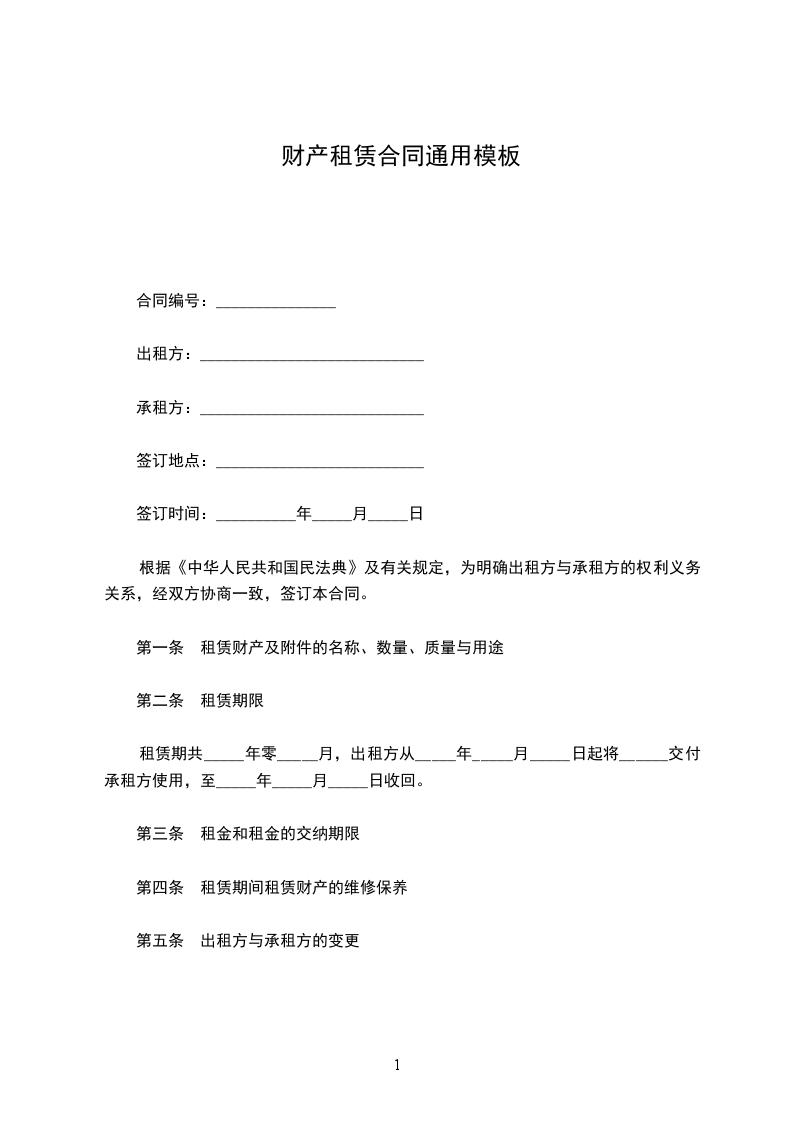 第一条 租赁财产及附件的名称、数量、质量与用途